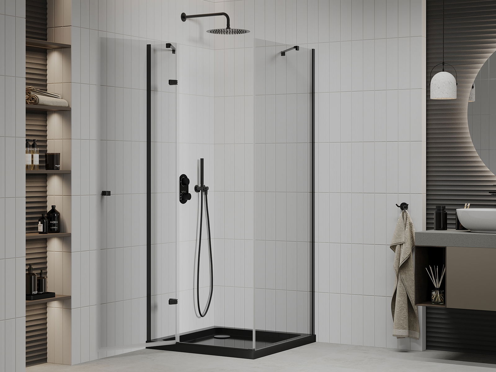 Mexen Roma 90 x 90 cm Hinged Shower Enclosure, Transparent, Black + Flat Tray, Black - 854-090-090-70-00-4070B