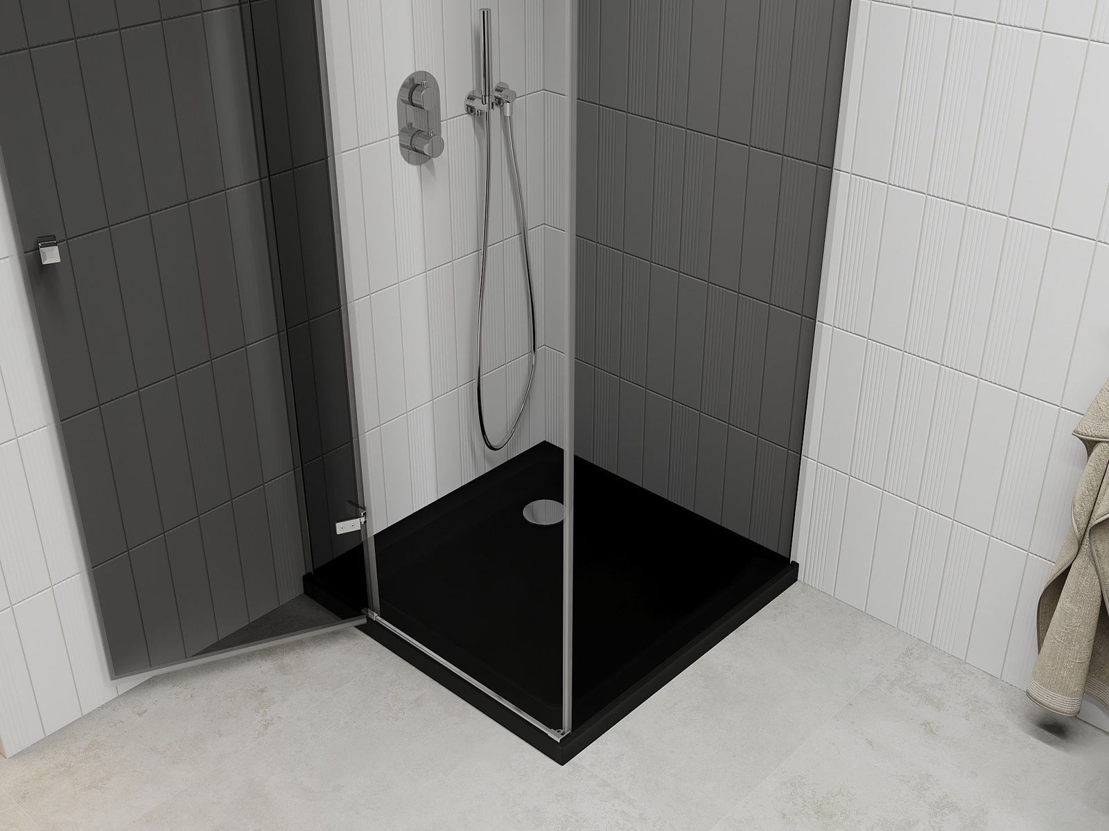 The handy and comfortable handle is made of durable and resistant metal. The fashionable shape, combined with a finish matching the color of the profiles, gives the whole a modern and stylish look, emphasizing the aesthetics of any bathroom.
