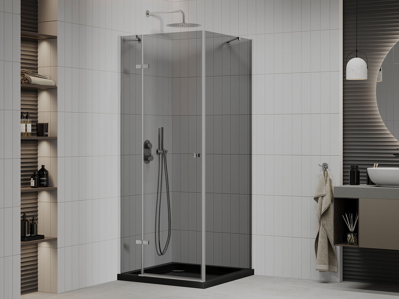 Mexen Roma 90 x 90 cm Swing Shower Enclosure, Graphite, Chrome + Flat Tray, Black - 854-090-090-01-40-4070