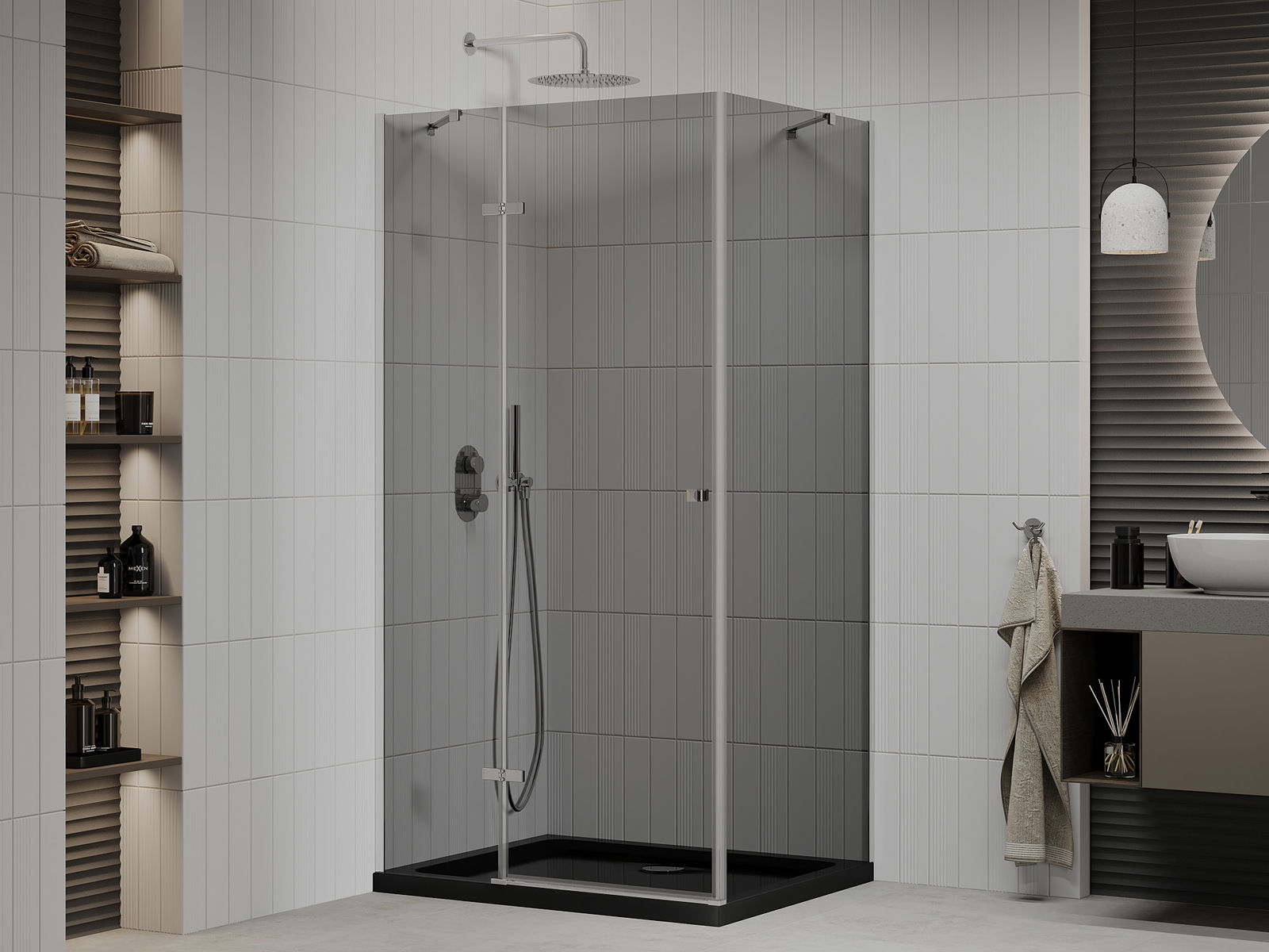 Mexen Roma pivot shower enclosure 100 x 90 cm, graphite, chrome + Flat tray, black - 854-100-090-01-40-4070