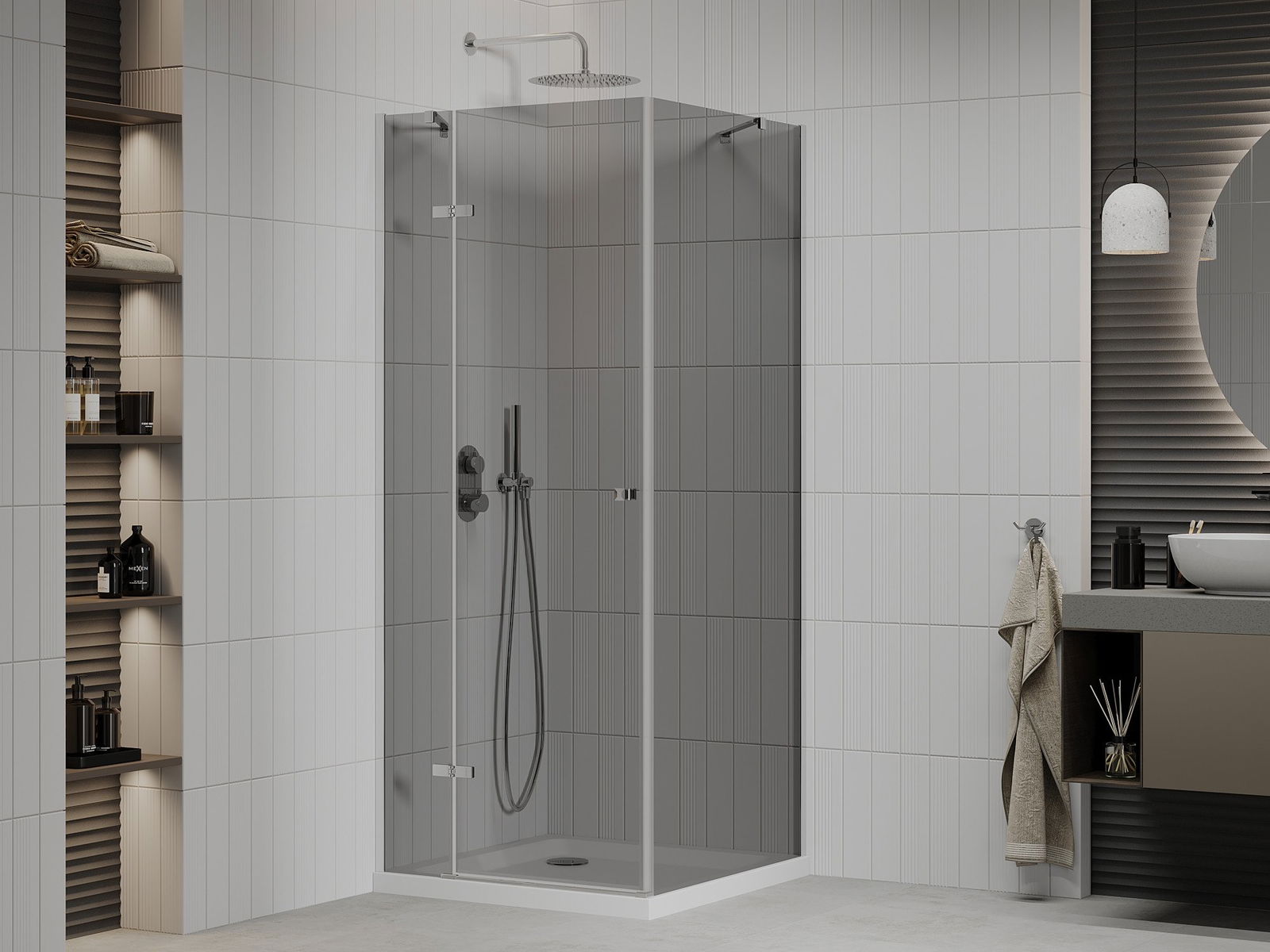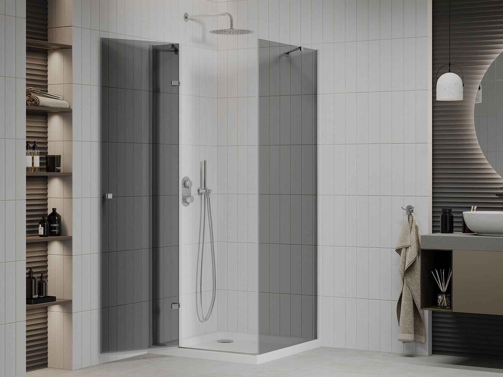 Mexen Roma 70 x 70 cm Hinged Shower Enclosure, Graphite, Chrome + Flat Tray, White - 854-070-070-01-40-4010