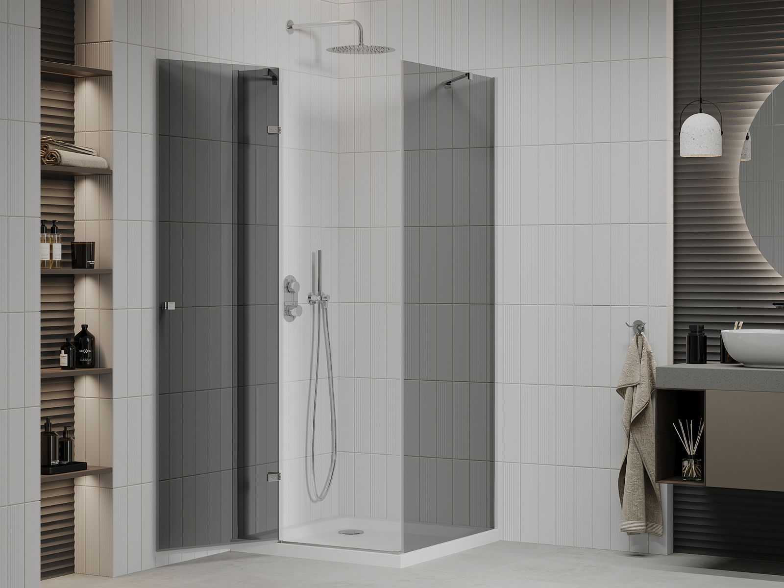 The handy and comfortable handle is made of durable and resistant metal. The fashionable shape, combined with a finish matching the color of the profiles, gives the whole a modern and stylish look, emphasizing the aesthetics of any bathroom.