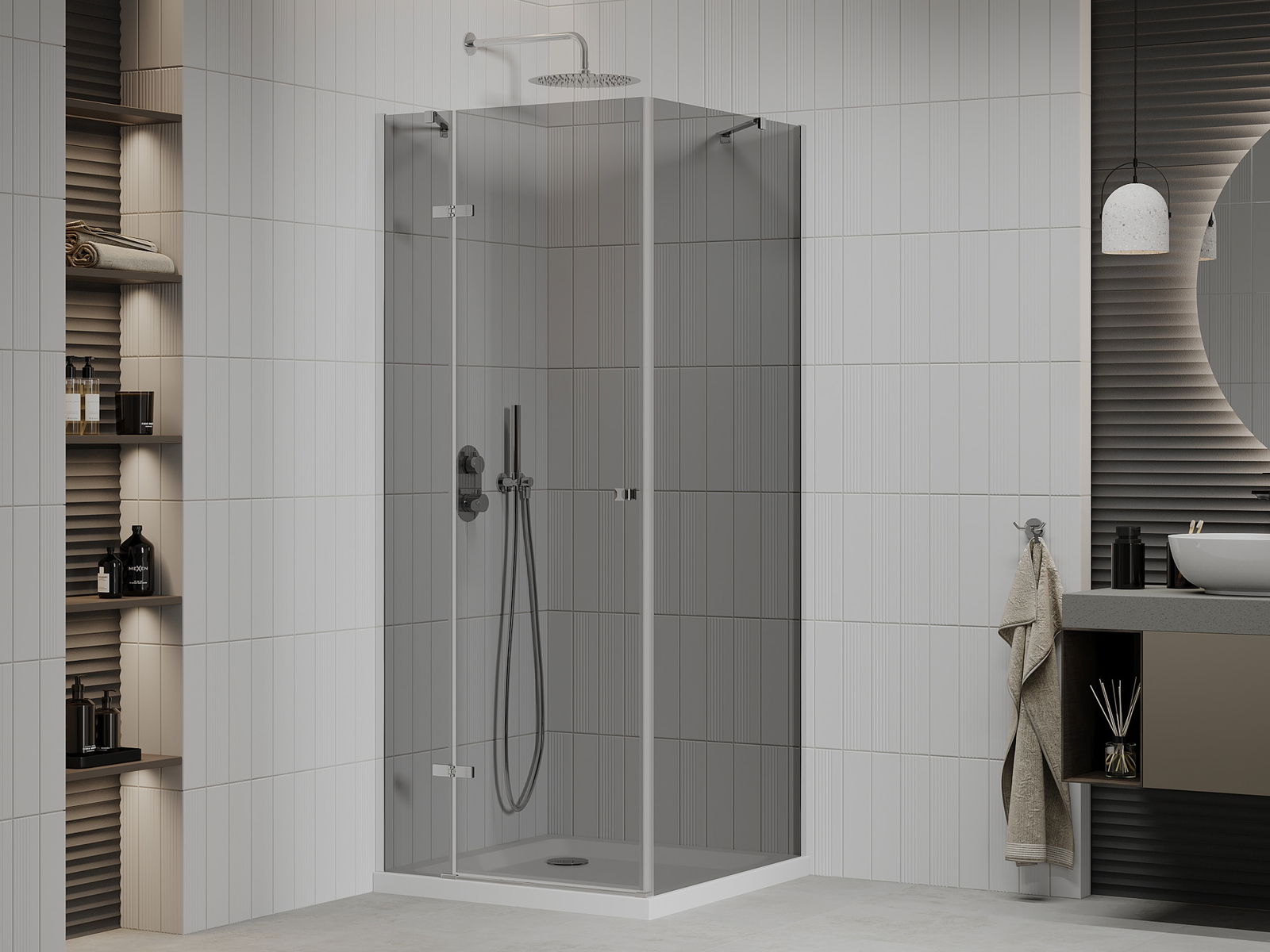 Mexen Roma 90 x 90 cm Hinged Shower Enclosure, Graphite, Chrome + Flat Tray, White - 854-090-090-01-40-4010