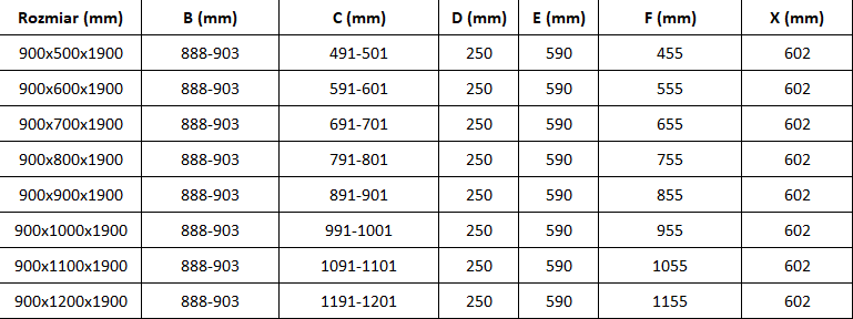 Size: 90x120 cm (door 90 cm, wall 120 cm)