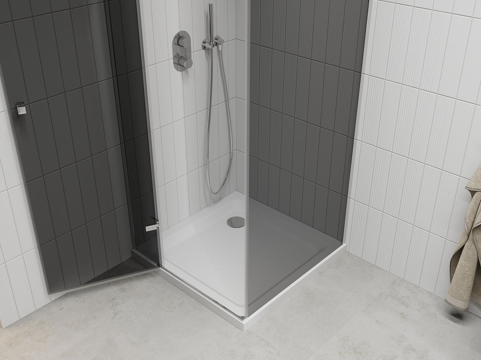 The handy and comfortable handle is made of durable and resistant metal. The fashionable shape, combined with a finish matching the color of the profiles, gives the whole a modern and stylish look, emphasizing the aesthetics of any bathroom.