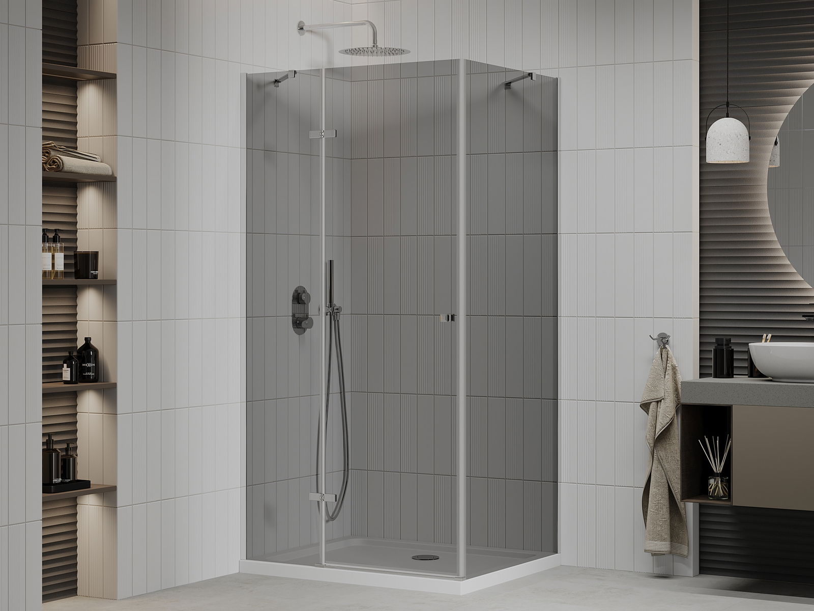 The handy and comfortable handle is made of durable and resistant metal. The fashionable shape, combined with a finish matching the color of the profiles, gives the whole a modern and stylish look, emphasizing the aesthetics of any bathroom.