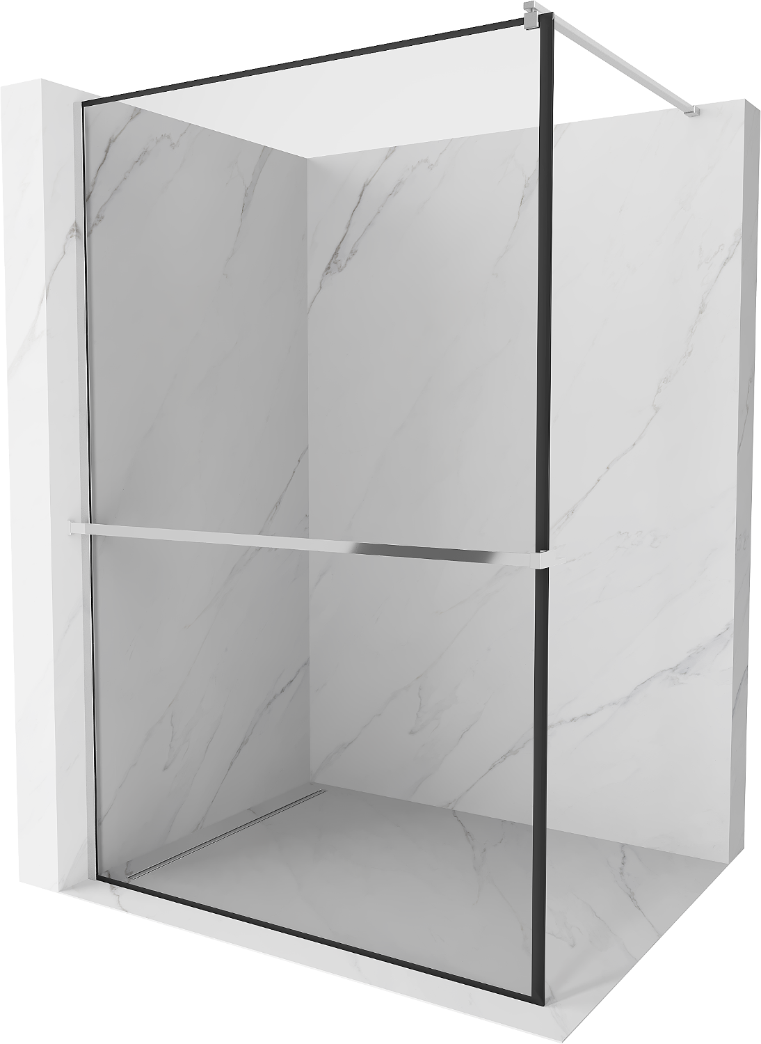 Mexen Kioto+ shower wall with shelf Walk-in 90 x 200 cm, black frame, chrome - 800-090-121-01-70