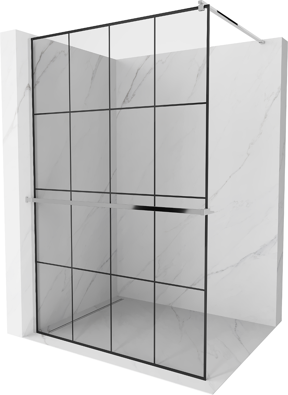 Mexen Kioto+ shower wall with Walk-in shelf 130 x 200 cm, black grid, chrome - 800-130-121-01-77
