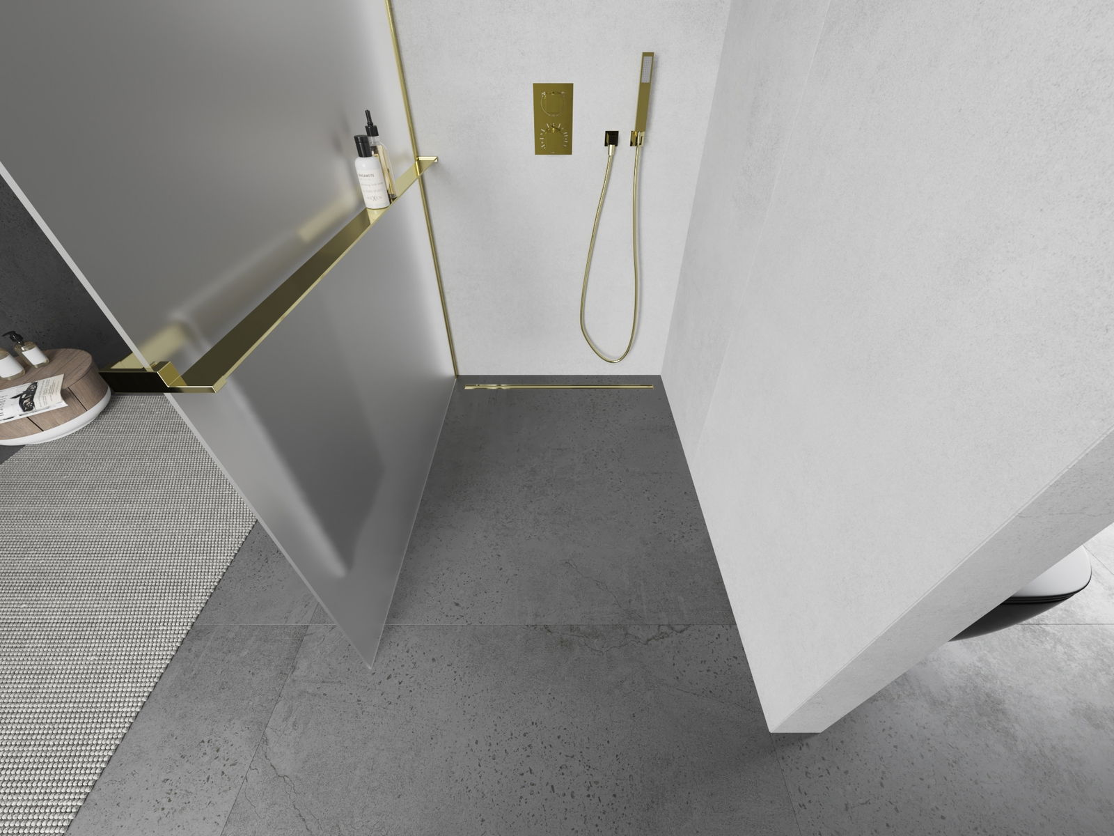 Mexen Kioto+ Walk-in Shower Wall with Shelf 80 x 200 cm, Frosted, Gold - 800-080-121-50-30