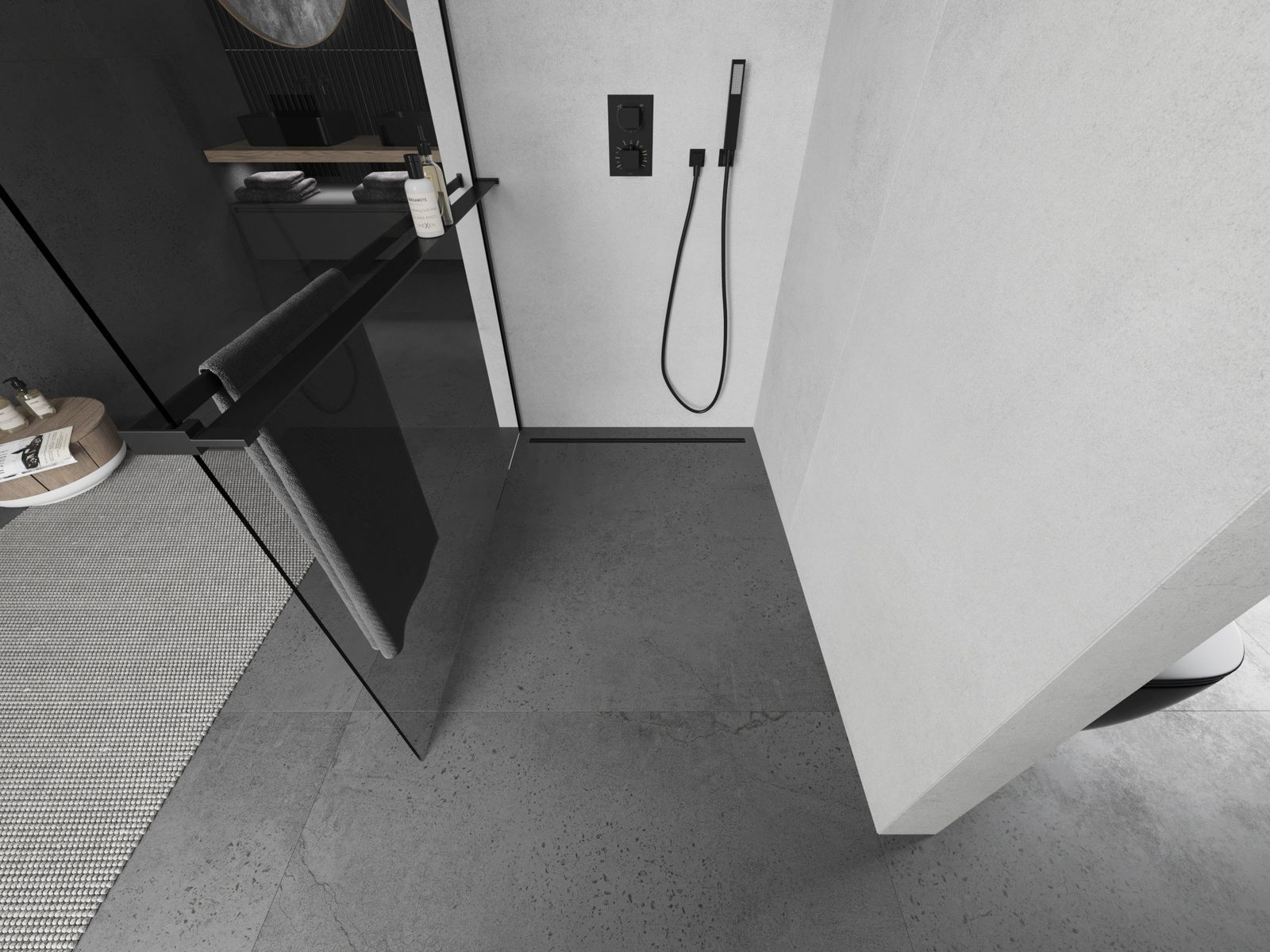The towel handle in the shower wall is a very practical and convenient solution. During bathing, the towel is always at your fingertips, facilitating free use. It is also an ideal place to dry the towel.