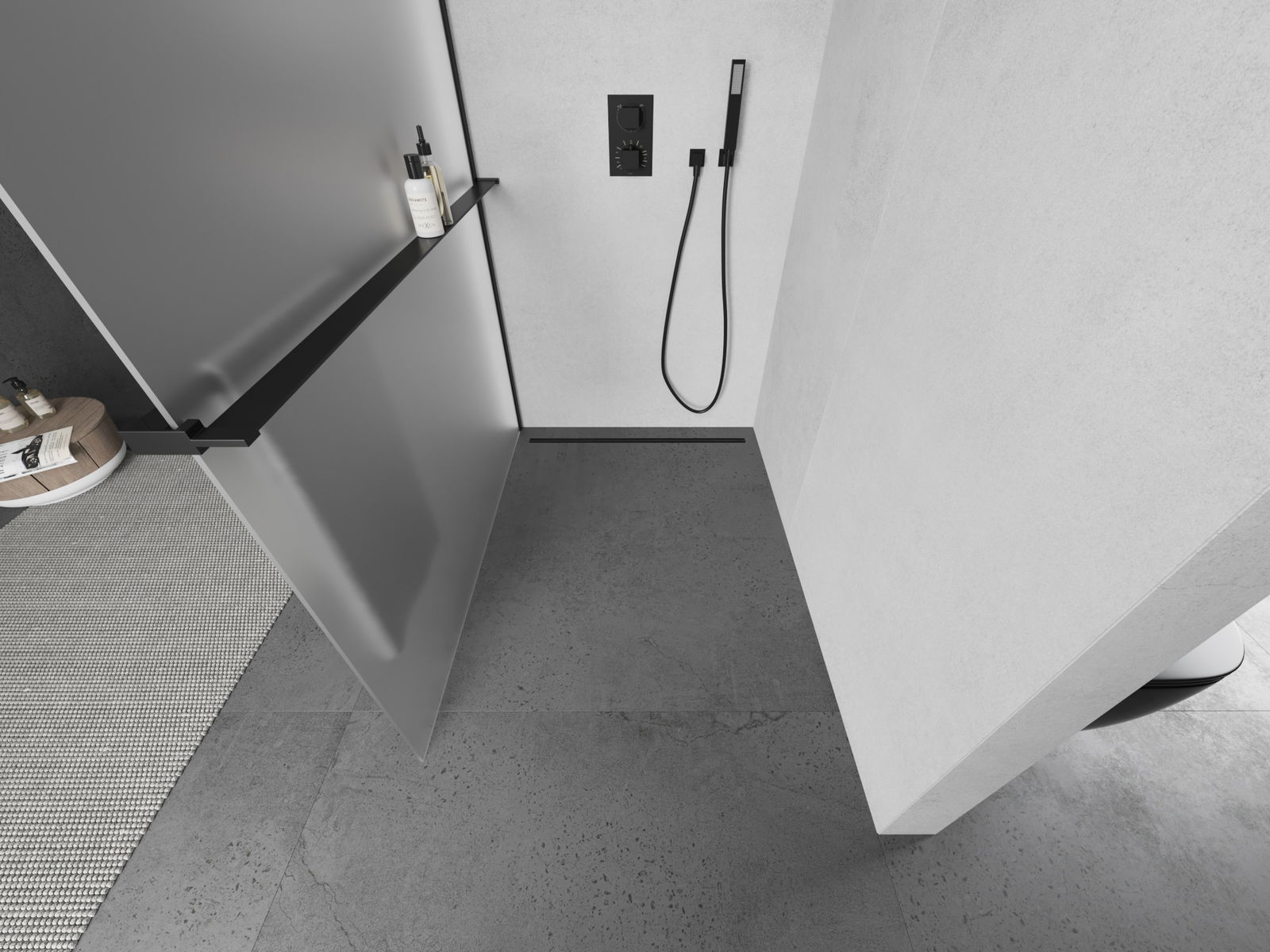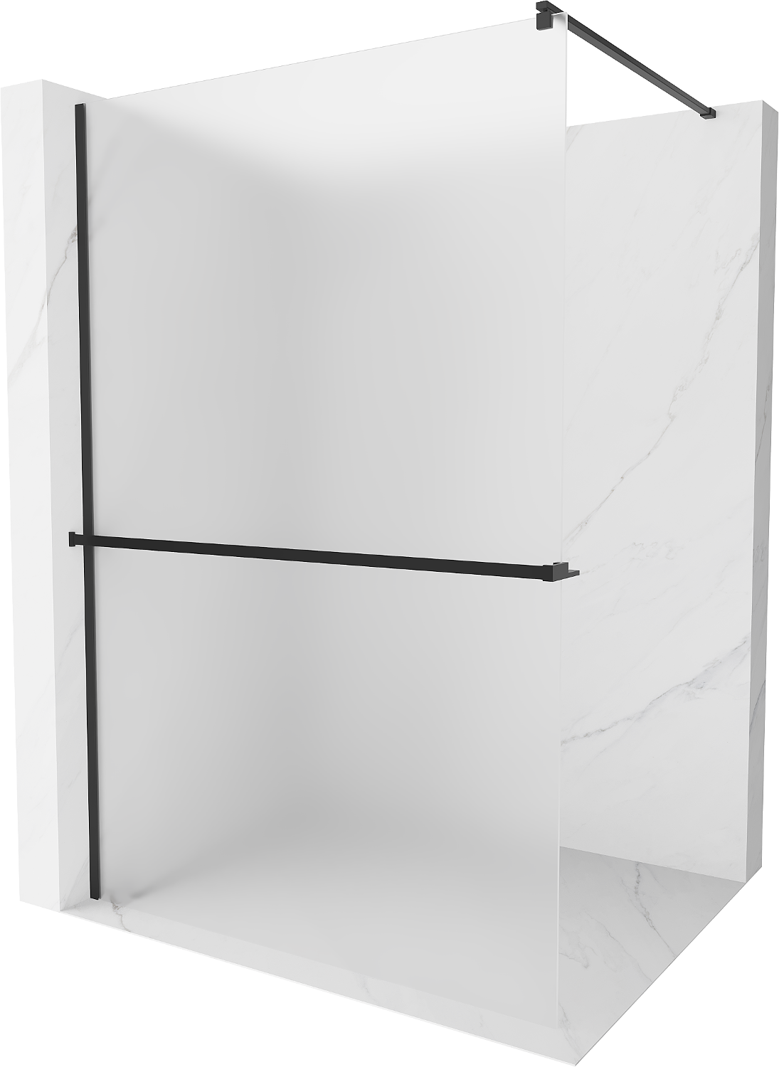 Mexen Kioto+ Shower Wall with Shelf Walk-in 120 x 200 cm, Frosted, Black - 800-120-121-70-30