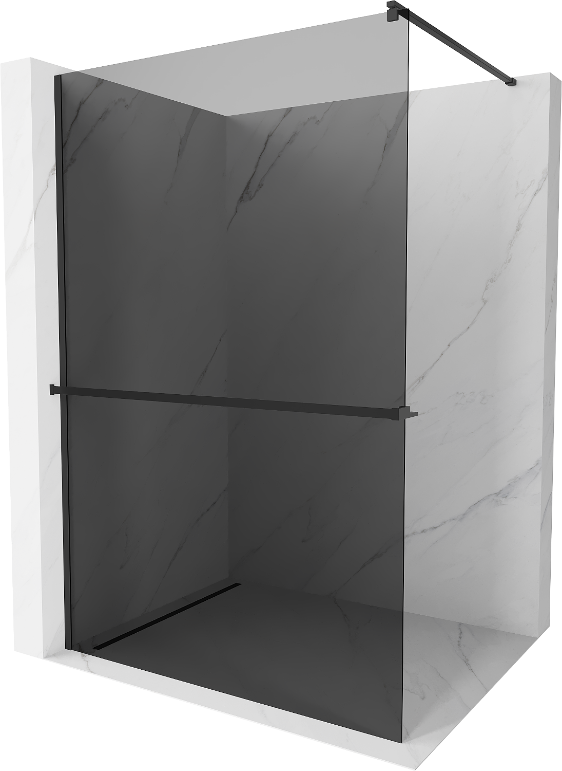 Mexen Kioto+ shower wall with Walk-in shelf 80 x 200 cm, graphite, black - 800-080-121-70-40