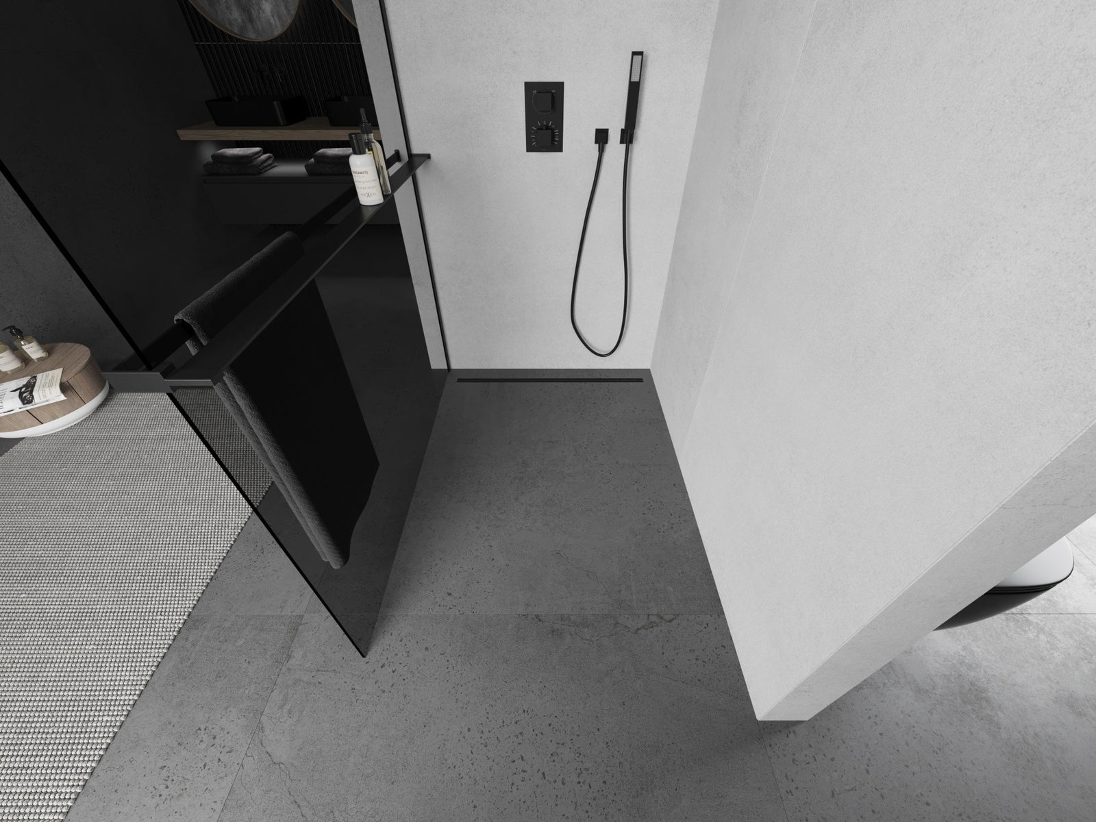 Mexen Kioto+ shower wall with shelf Walk-in 120 x 200 cm, graphite, black - 800-120-121-70-40