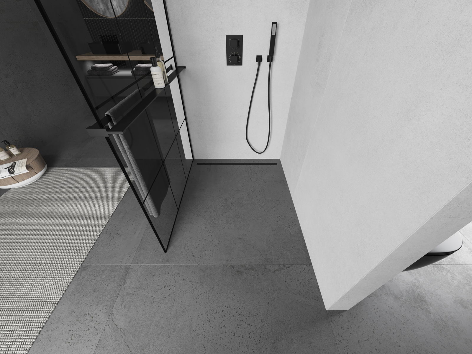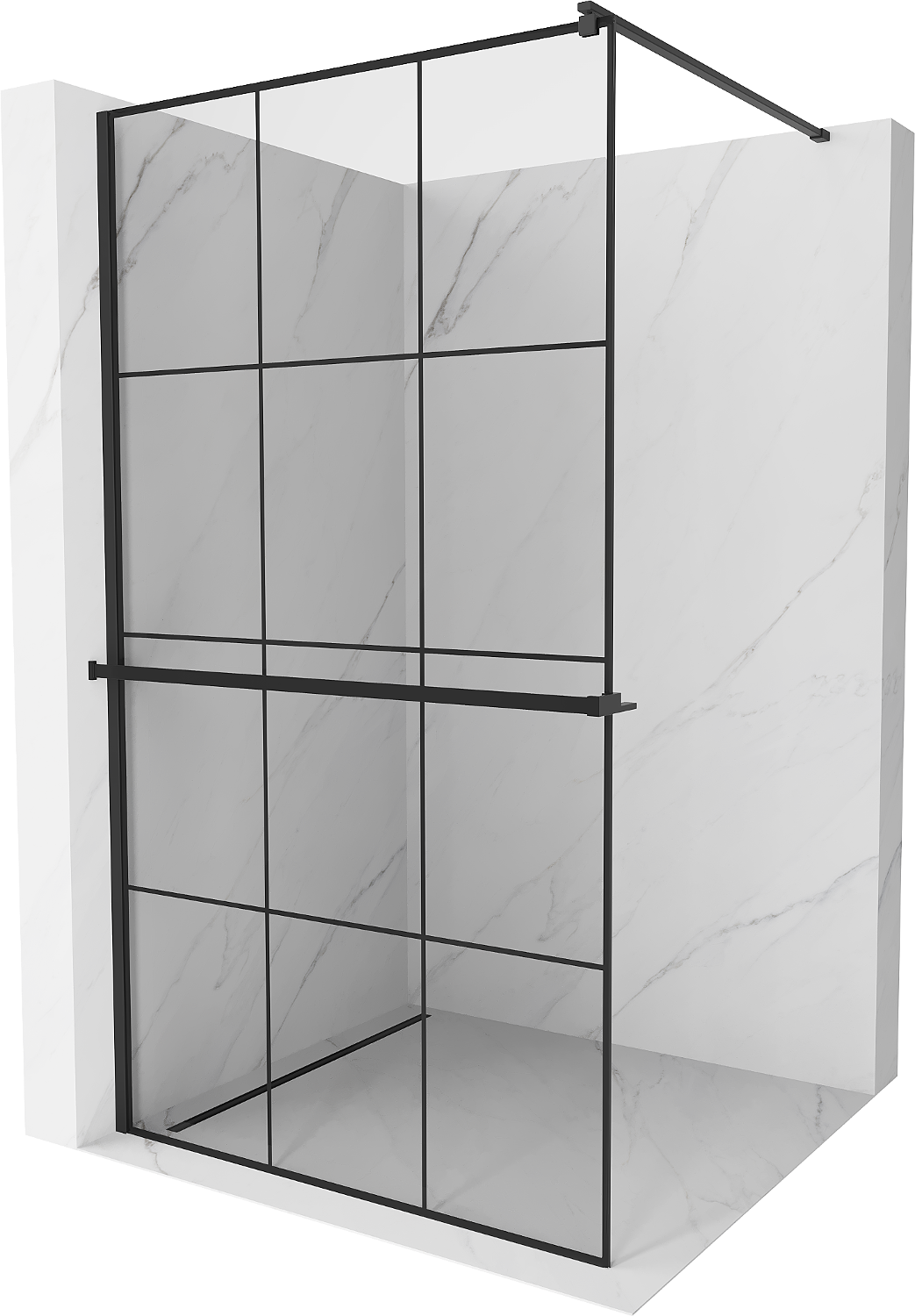 Mexen Kioto+ shower wall with shelf Walk-in 100 x 200 cm, black grid, black - 800-100-121-70-77