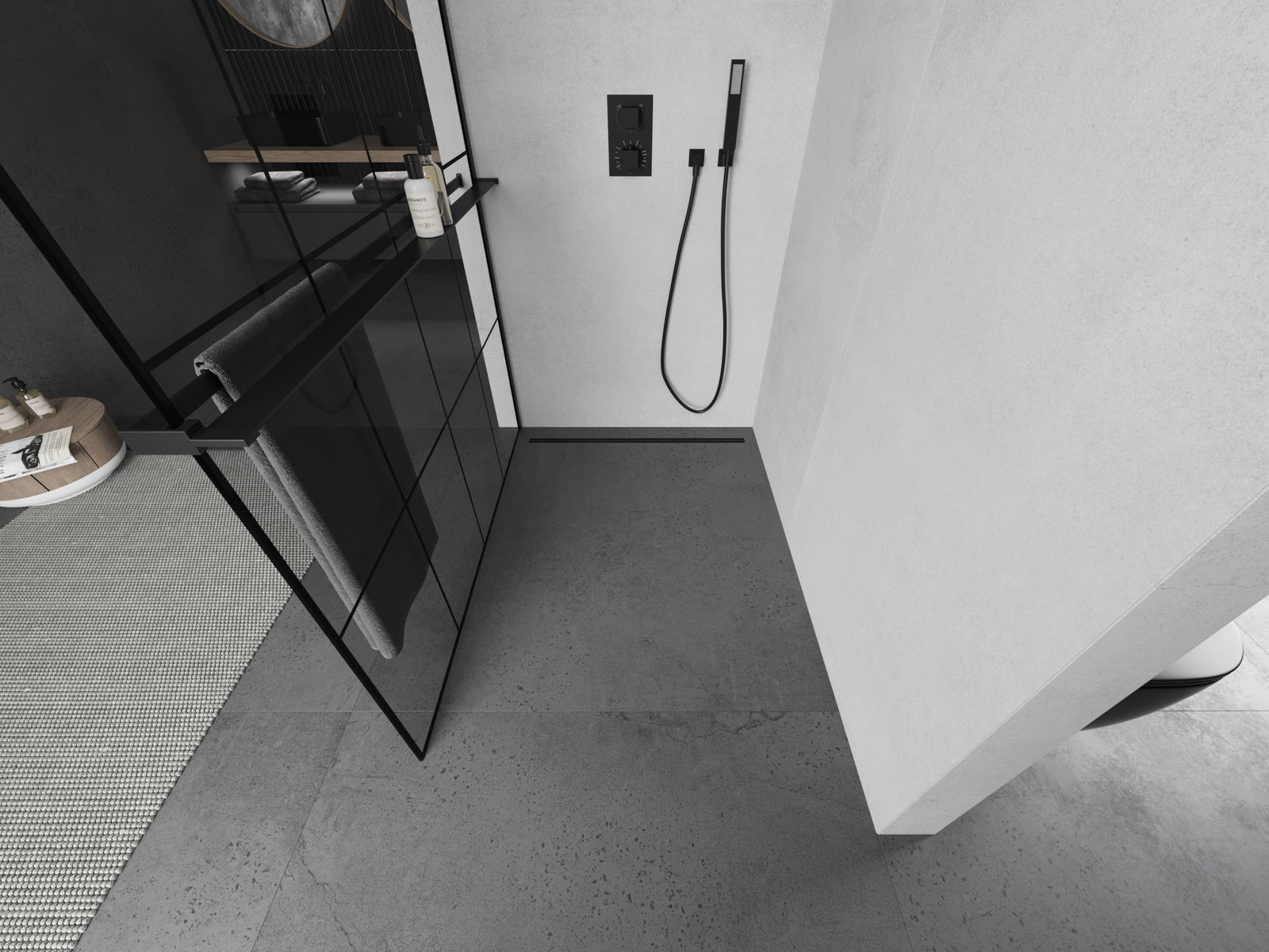 Mexen Kioto+ shower wall with shelf Walk-in 140 x 200 cm, black grid, black - 800-140-121-70-77