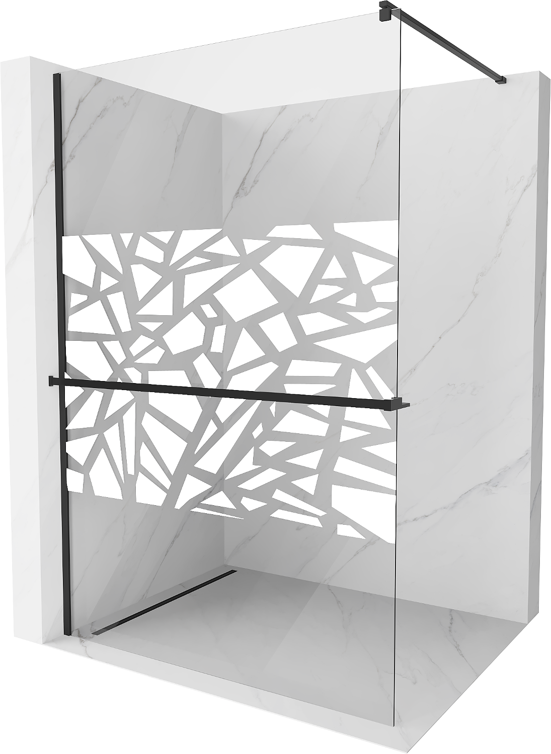 Mexen Kioto+ shower wall with Walk-in shelf 80 x 200 cm, white pattern, black - 800-080-121-70-85