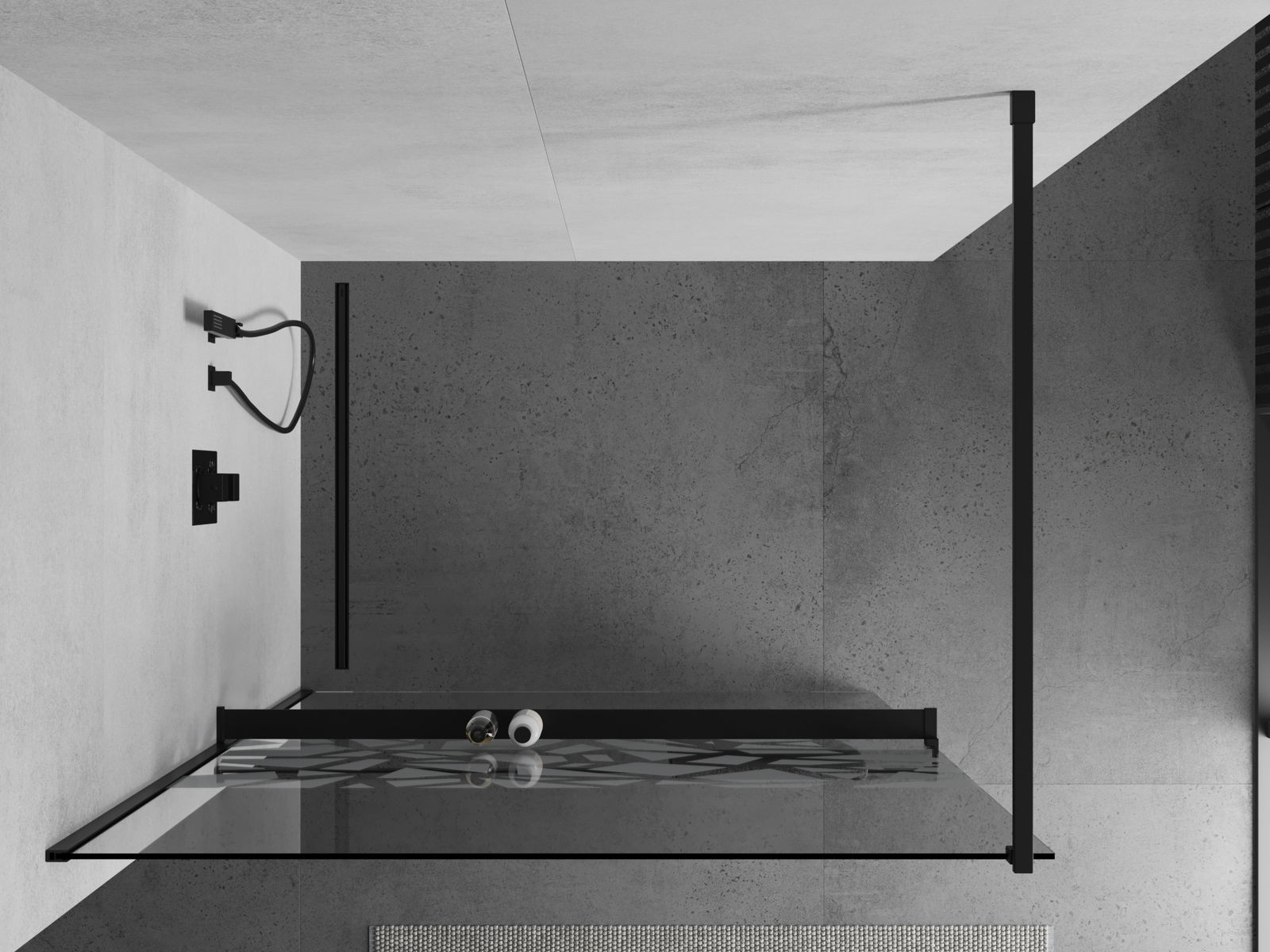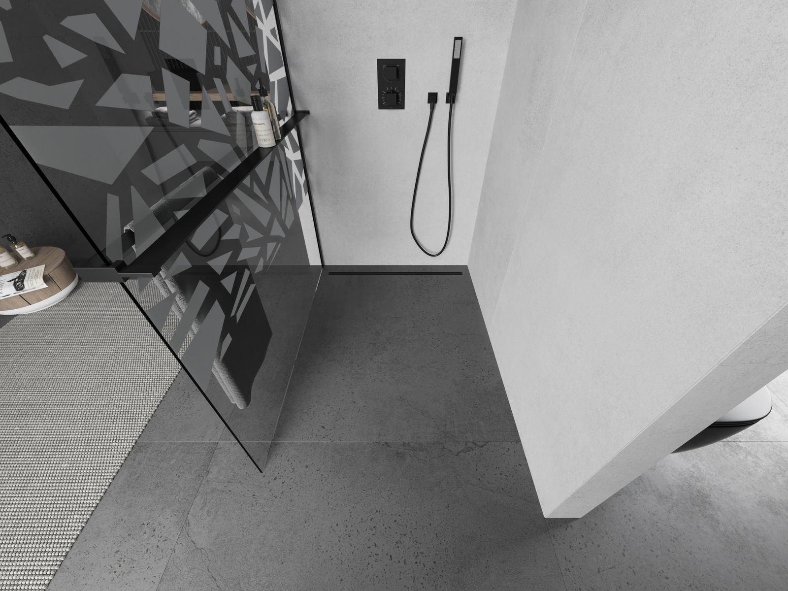 Mexen Kioto+ Walk-in Shower Wall with Shelf 110 x 200 cm, White Pattern, Black - 800-110-121-70-85