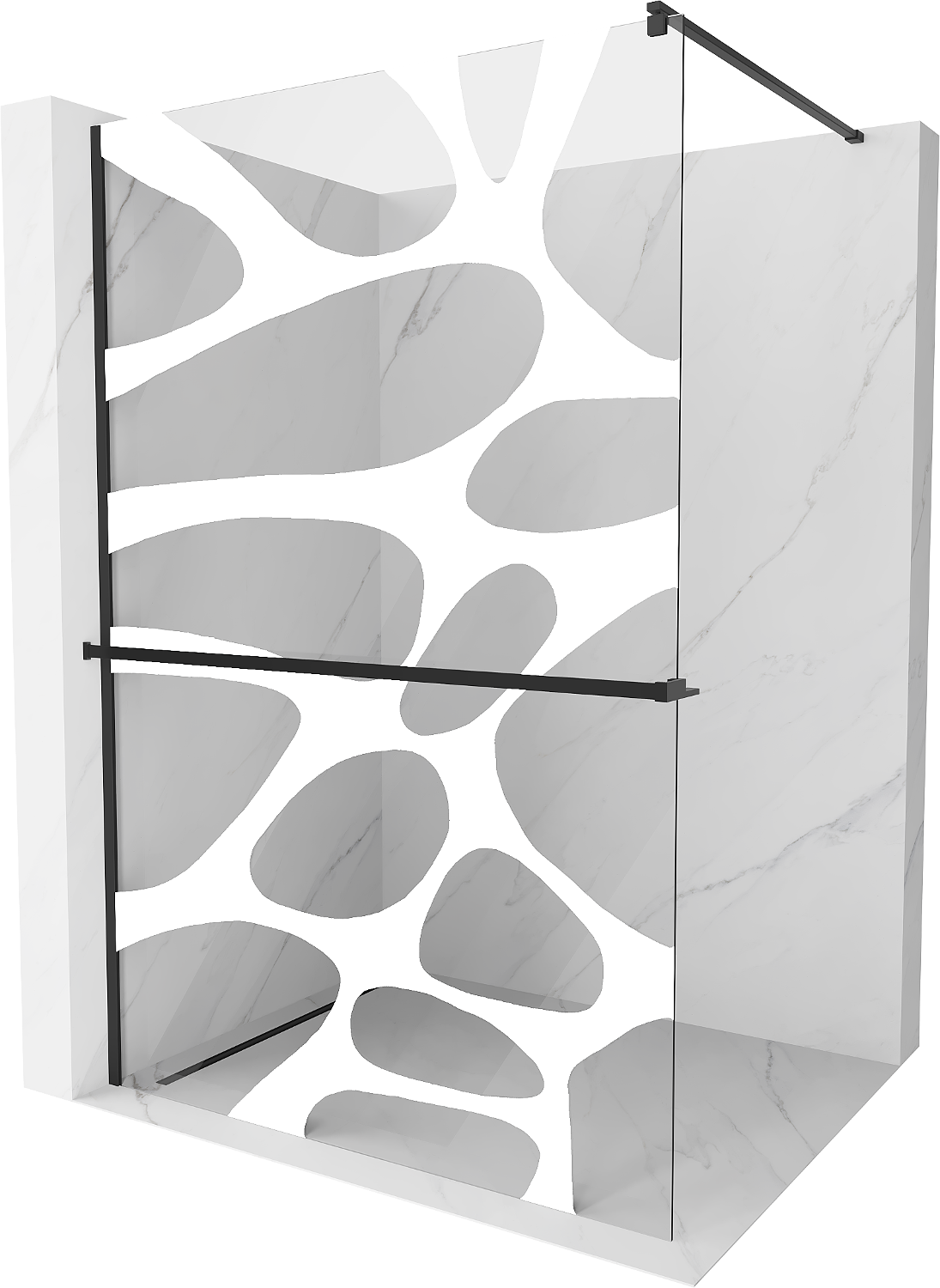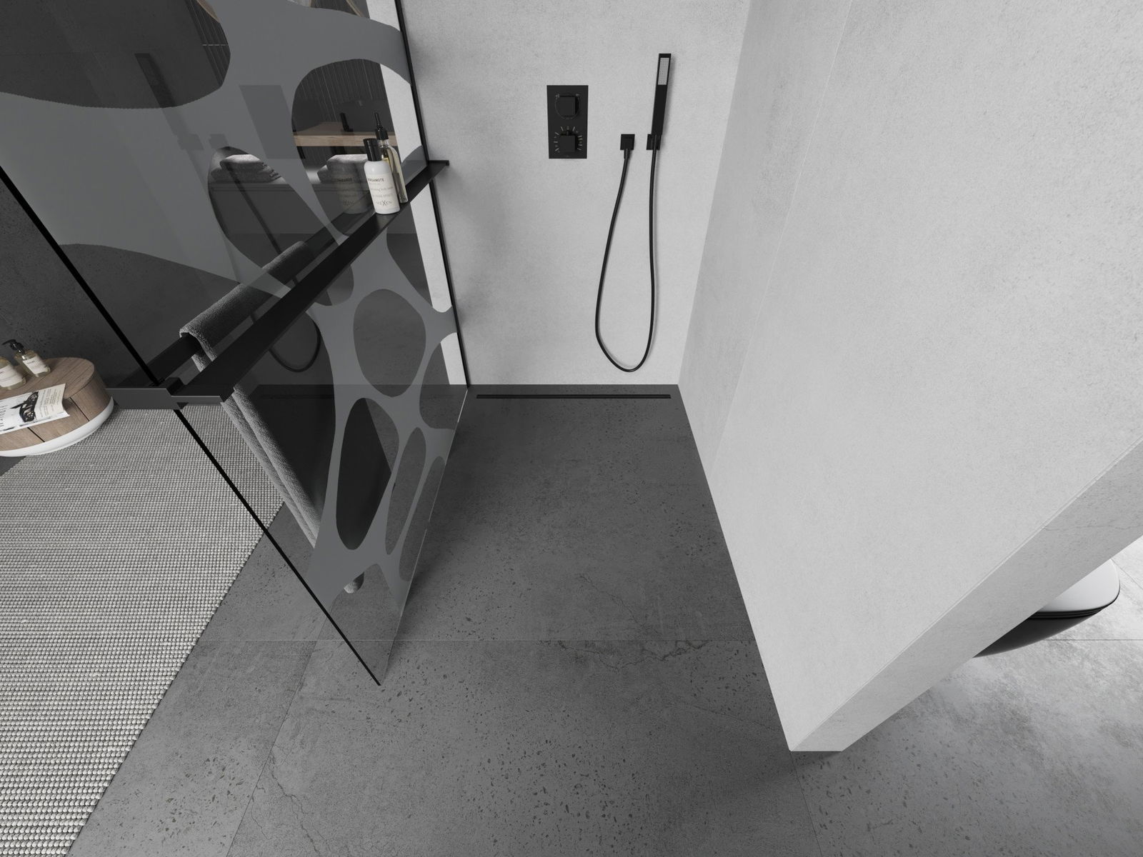Mexen Kioto+ Shower Wall with Shelf Walk-in 70 x 200 cm, White Wave, Black - 800-070-121-70-97