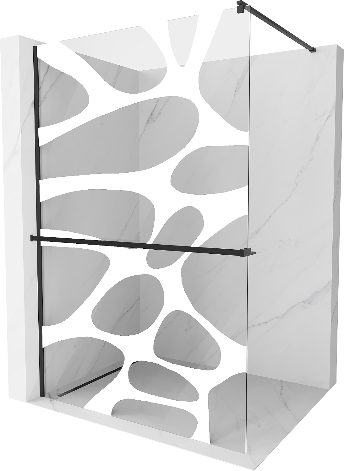 Mexen Kioto+ shower wall with shelf Walk-in 100 x 200 cm, white wave, black - 800-100-121-70-97