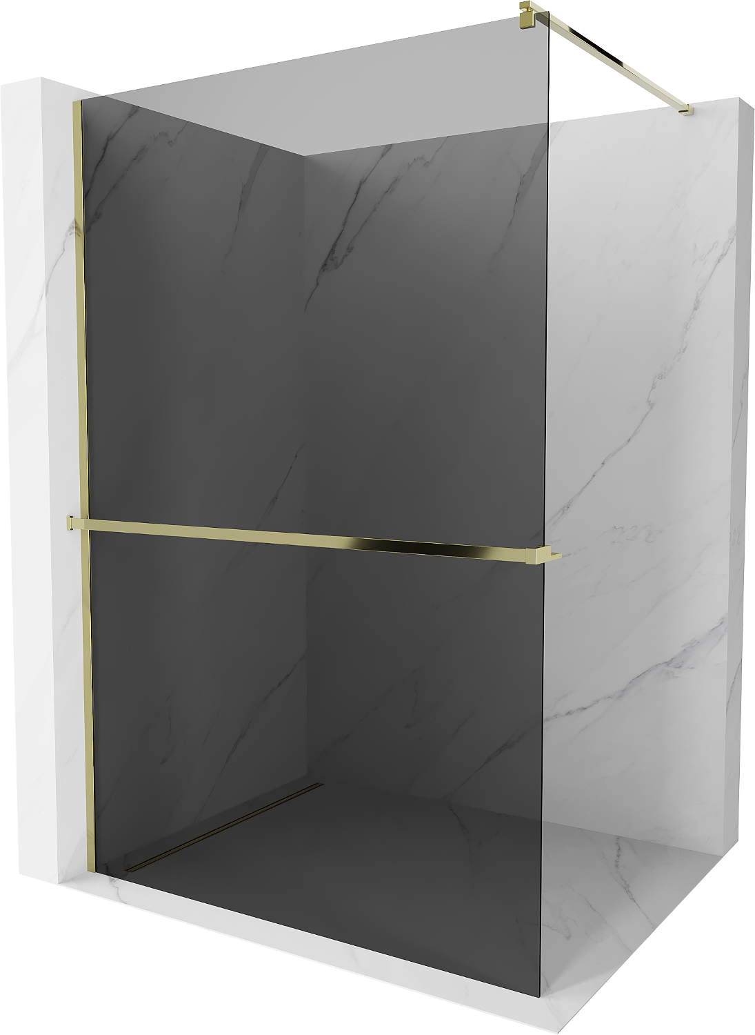 Mexen Kioto+ shower wall with shelf Walk-in 110 x 200 cm, graphite, gold - 800-110-121-50-40