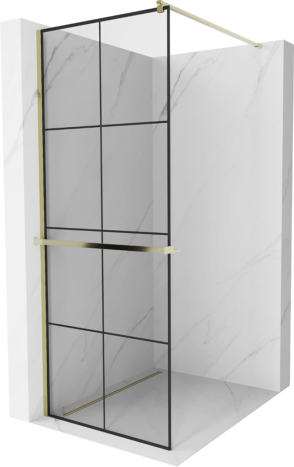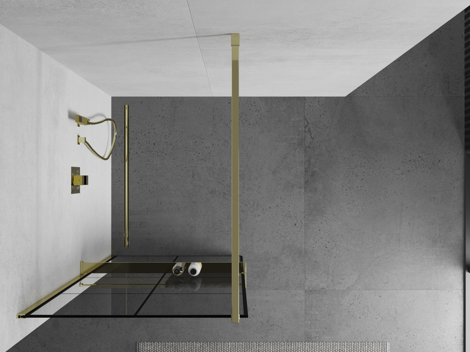 Mexen Kioto+ Shower screen with shelf Walk-in 90 x 200 cm, black grid, gold - 800-090-121-50-77