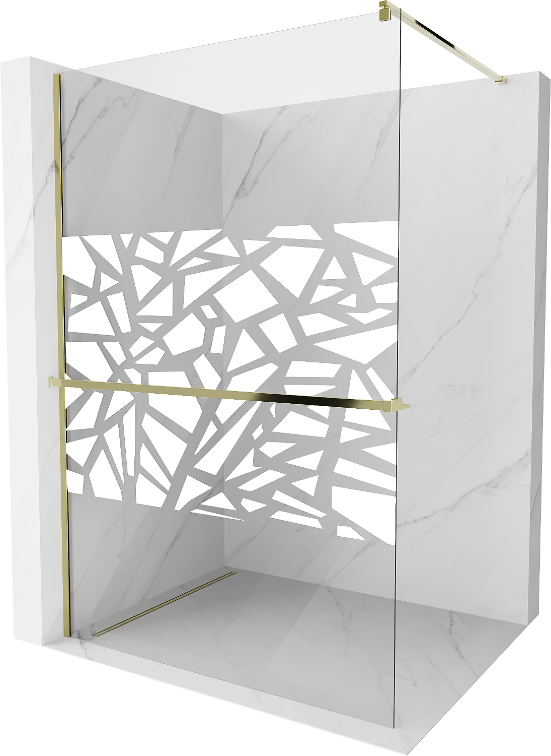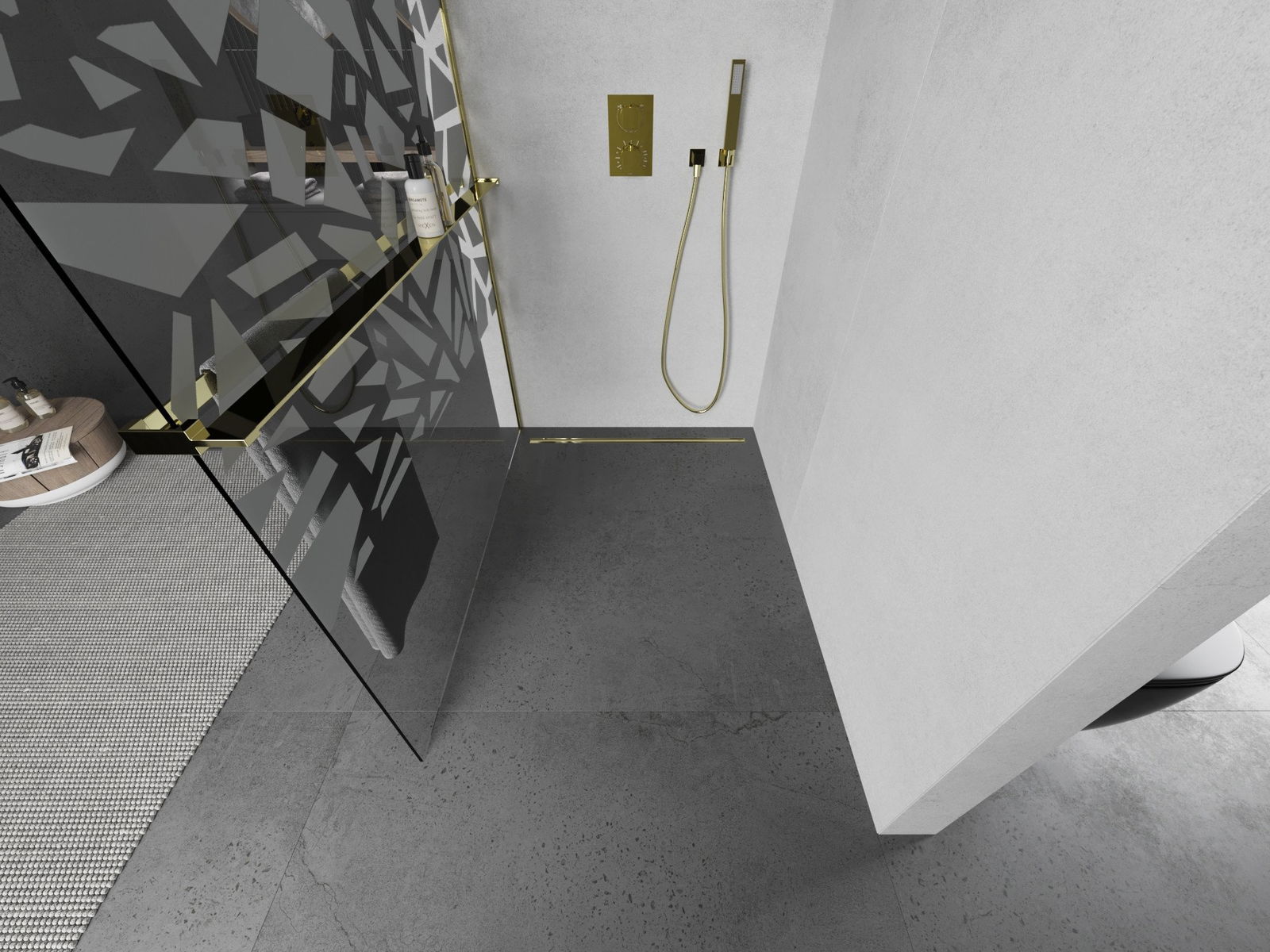 Mexen Kioto+ Shower Wall with Walk-in Shelf 90 x 200 cm, White Pattern, Gold - 800-090-121-50-85