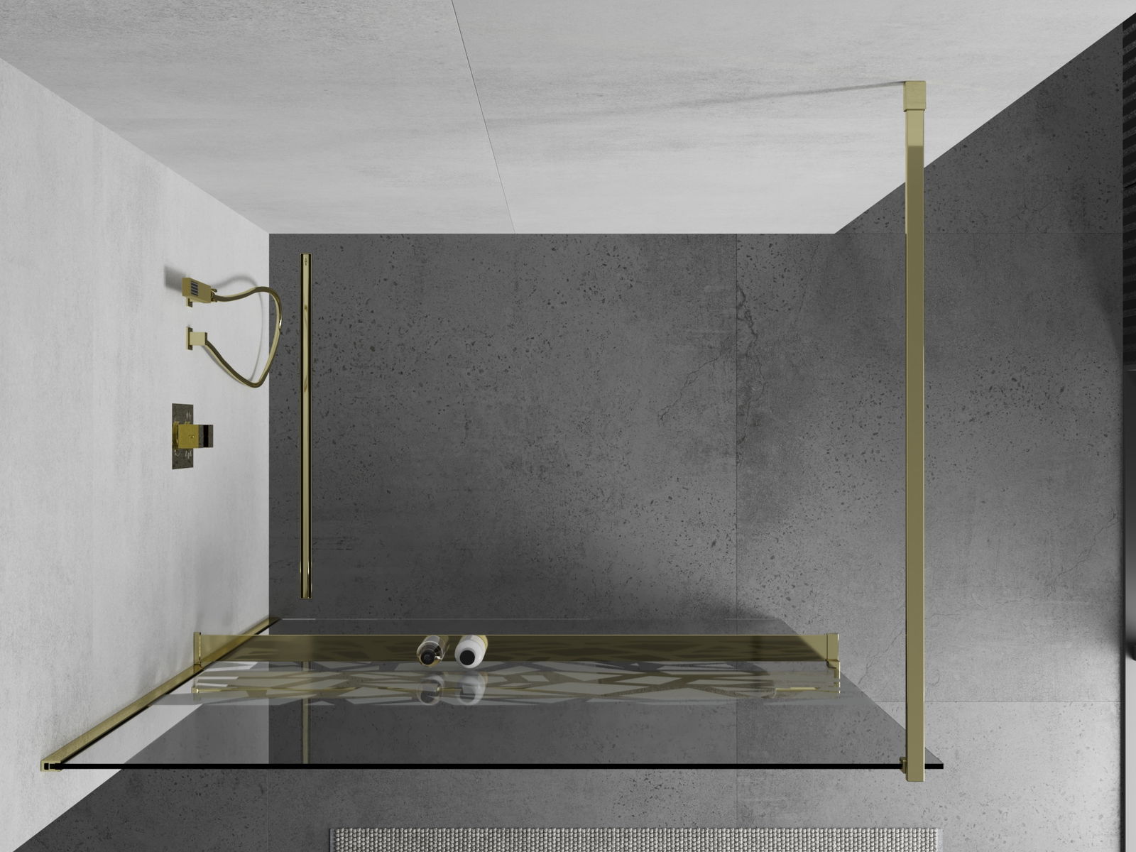 Mexen Kioto+ shower wall with Walk-in shelf 100 x 200 cm, white pattern, gold - 800-100-121-50-85