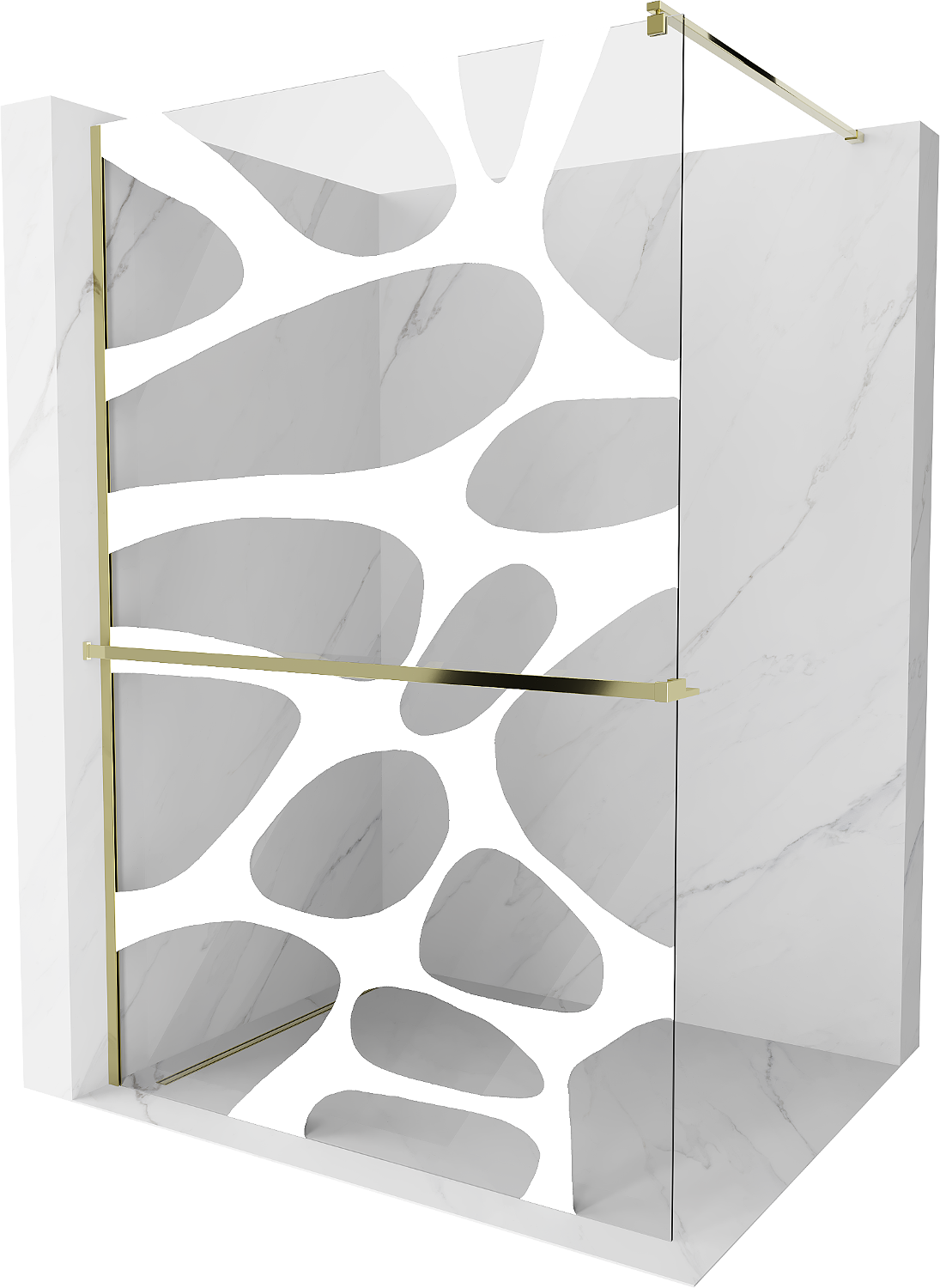 Mexen Kioto+ shower wall with shelf Walk-in 90 x 200 cm, white wave, gold - 800-090-121-50-97