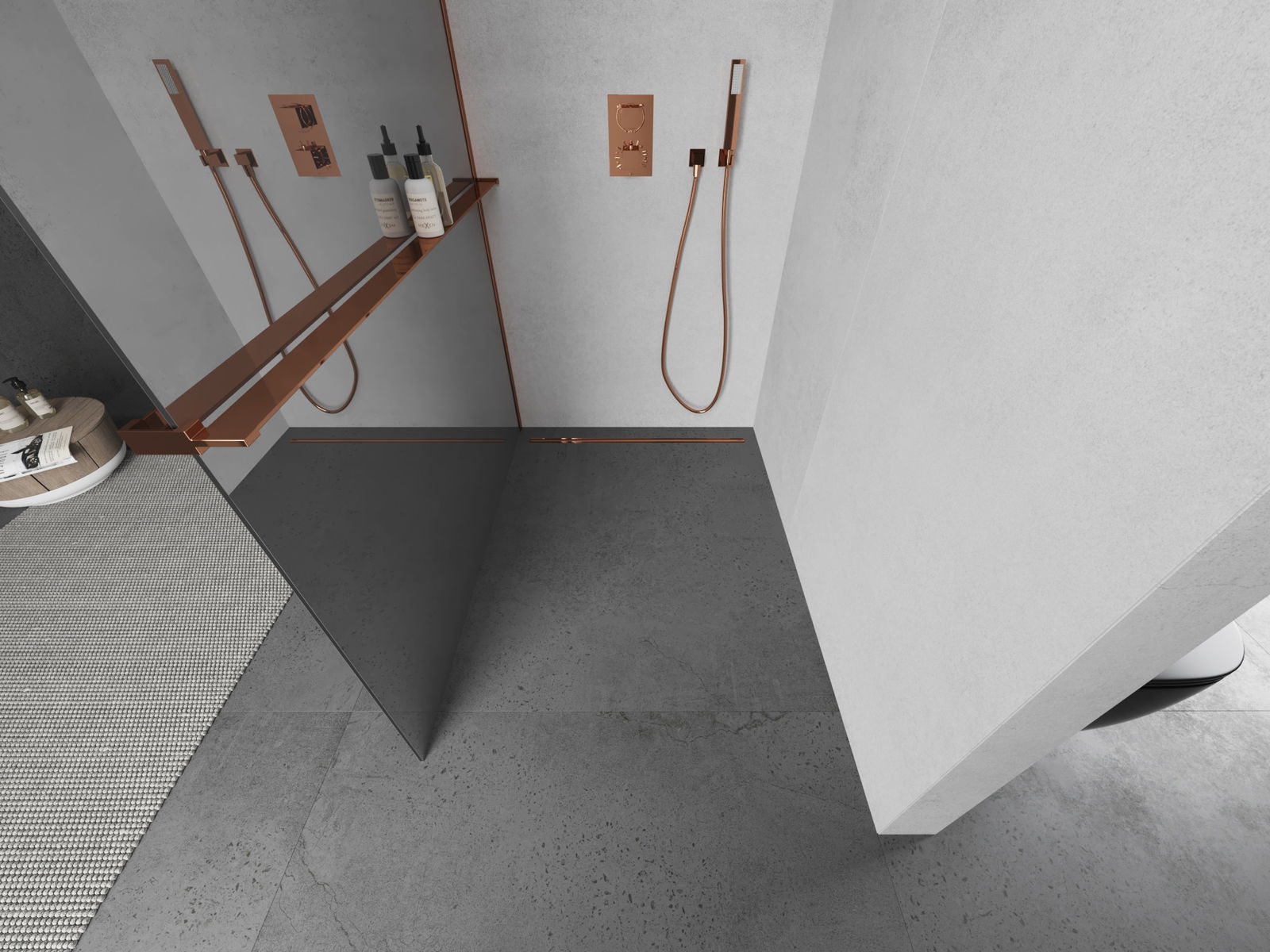 Mexen Kioto+ Walk-in Shower Wall with Shelf 80 x 200 cm, Mirror, Rose Gold - 800-080-121-60-50