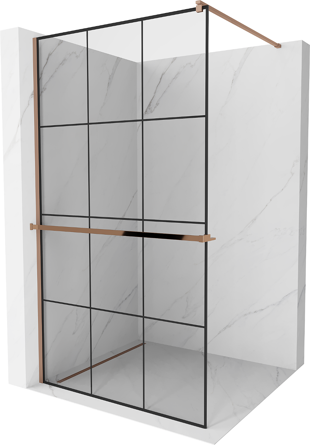 Mexen Kioto+ shower screen with shelf Walk-in 100 x 200 cm, black grid, pink gold - 800-100-121-60-77