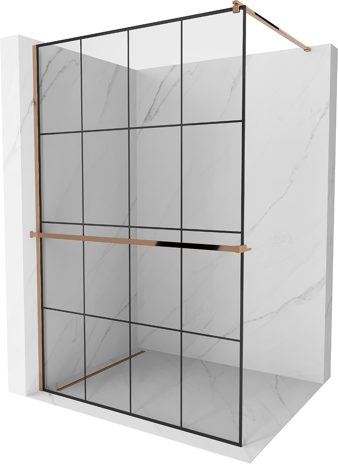 Mexen Kioto+ shower wall with Walk-in shelf 130 x 200 cm, black grid, rose gold - 800-130-121-60-77