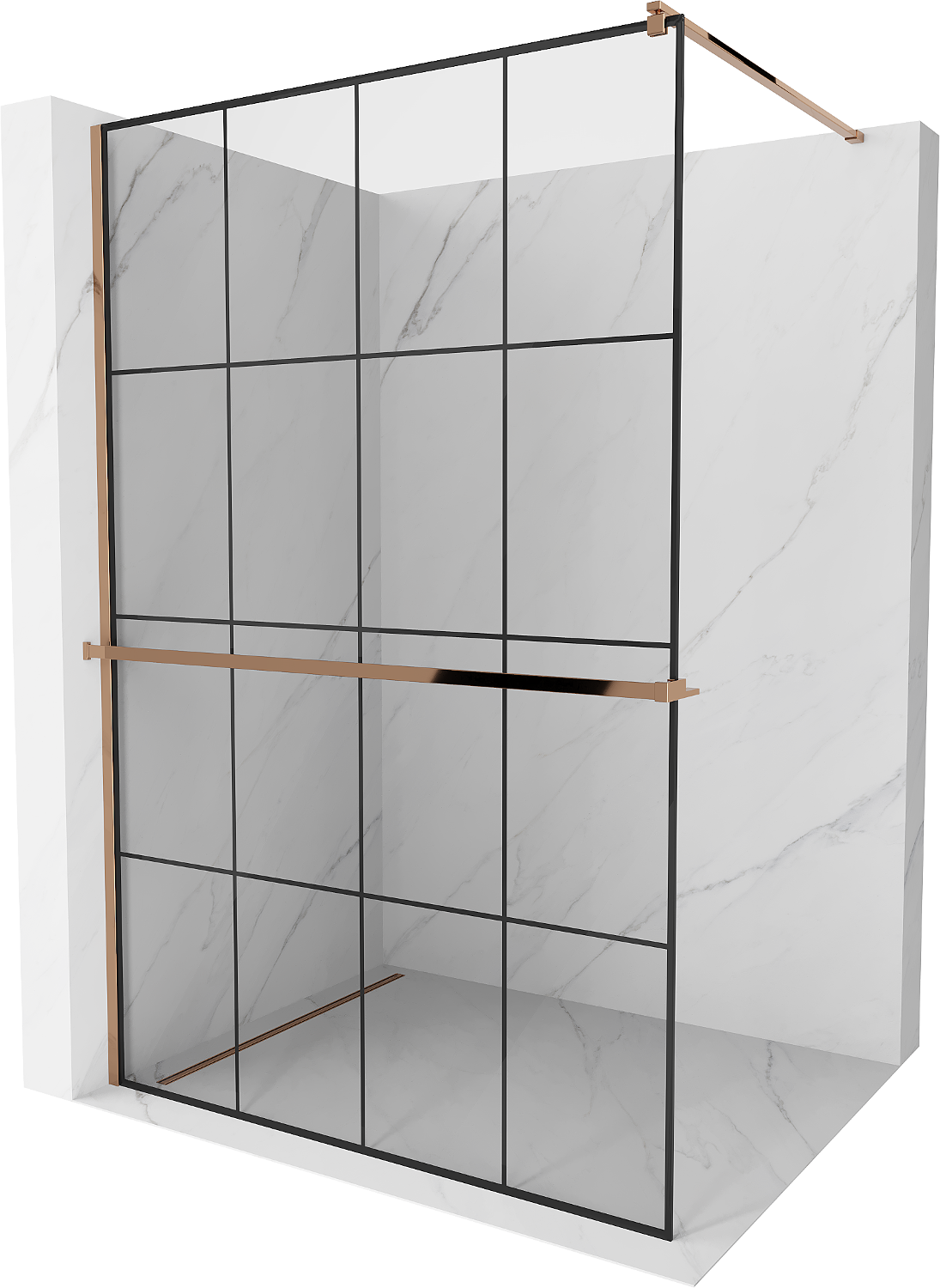 Mexen Kioto+ shower wall with shelf Walk-in 140 x 200 cm, black grid, rose gold - 800-140-121-60-77
