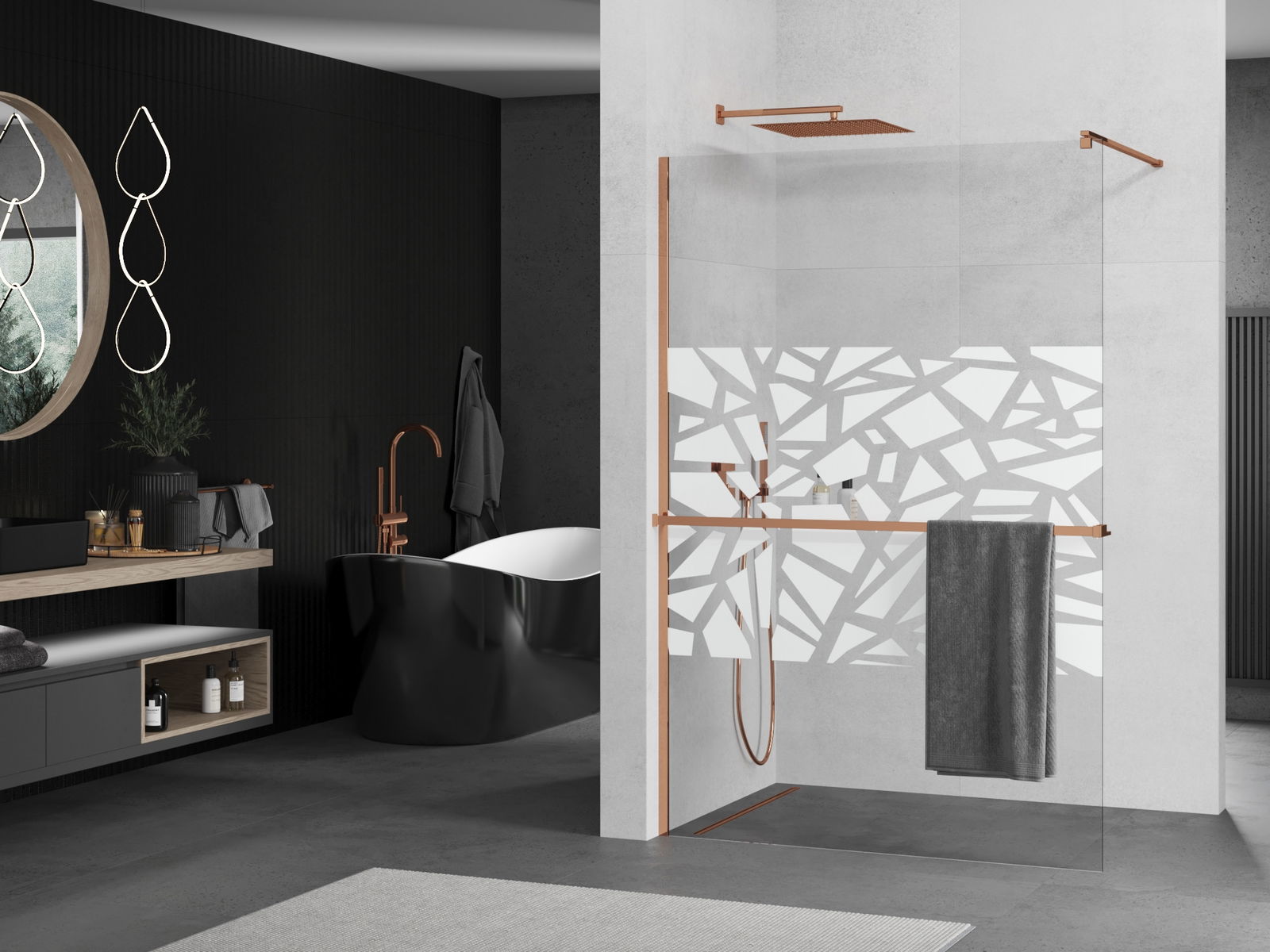 Mexen Kioto+ shower wall with Walk-in shelf 130 x 200 cm, white pattern, pink gold - 800-130-121-60-85