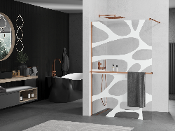 Mexen Kioto+ shower wall with shelf Walk-in 120 x 200 cm, white wave, rose gold - 800-120-121-60-97