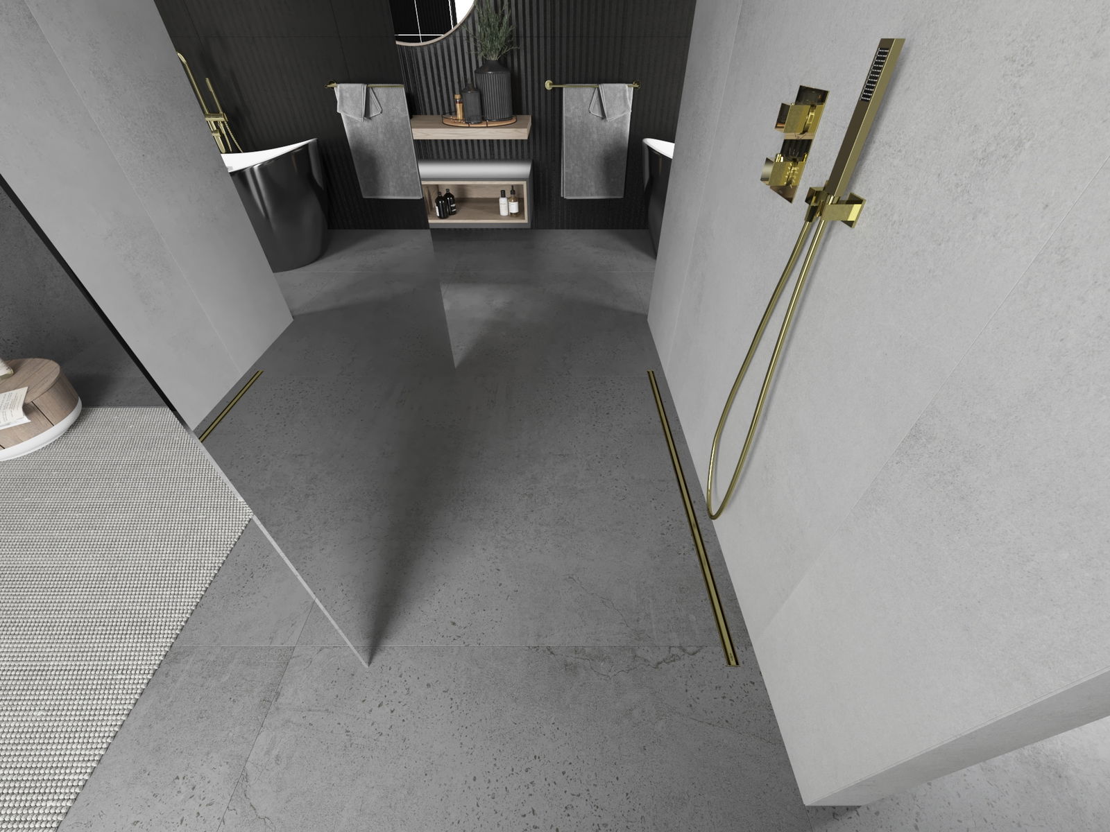 Mexen Kioto freestanding shower wall 120 x 200 cm, mirror 8 mm, gold - 800-120-002-50-50