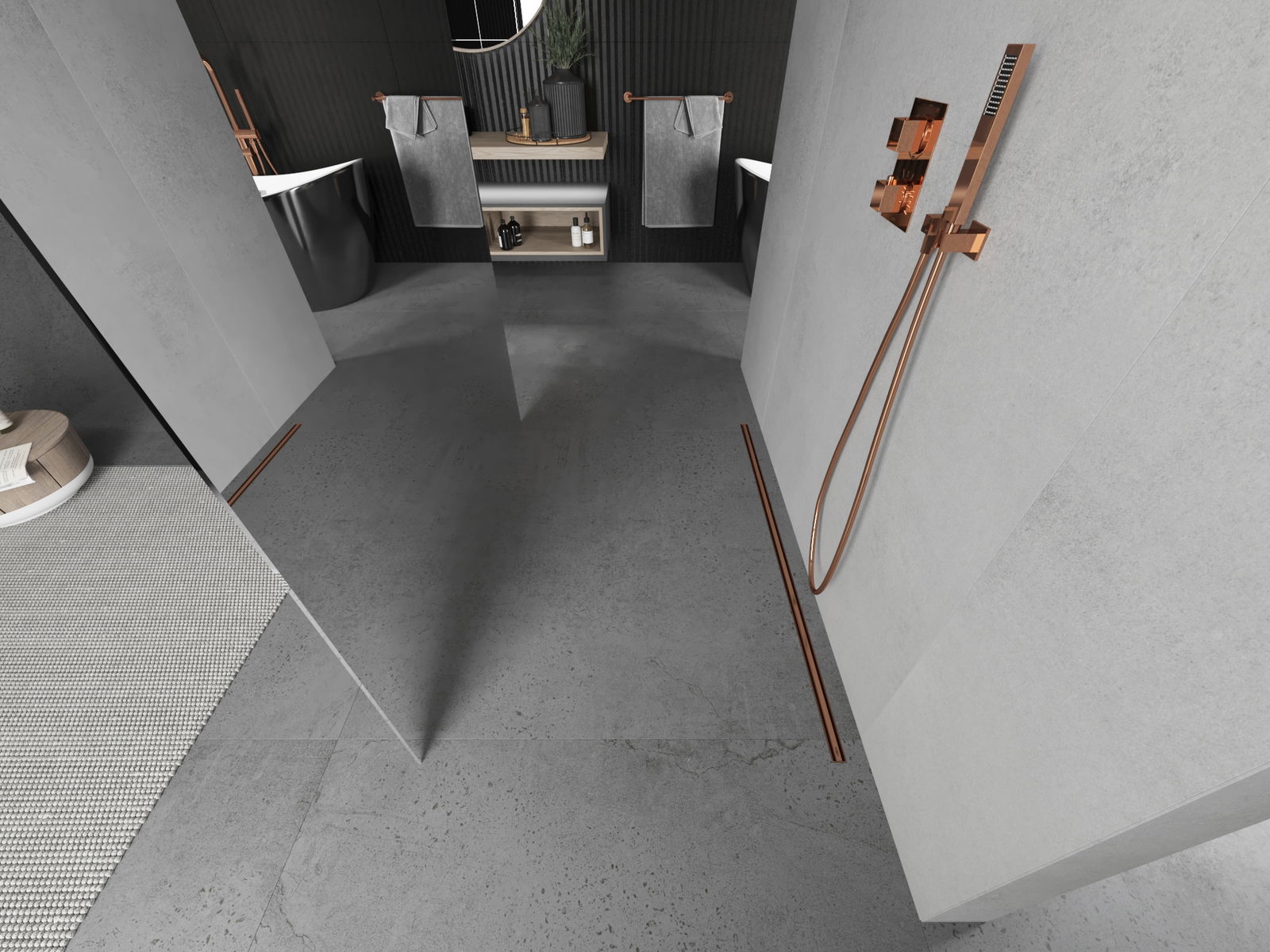 Mexen Kioto 110 x 200 cm Freestanding Shower Screen, Mirror 8 mm, Rose Gold - 800-110-002-60-50