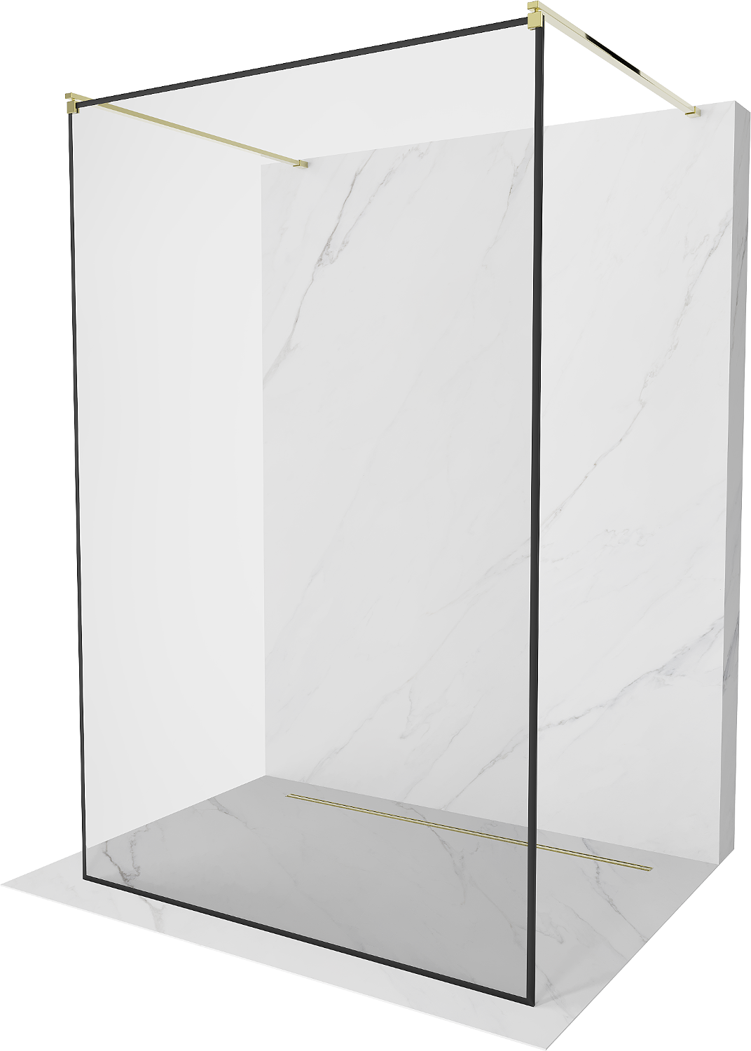 Mexen Kioto freestanding shower wall 130 x 200 cm, black frame 8 mm, gold- 800-130-002-50-70