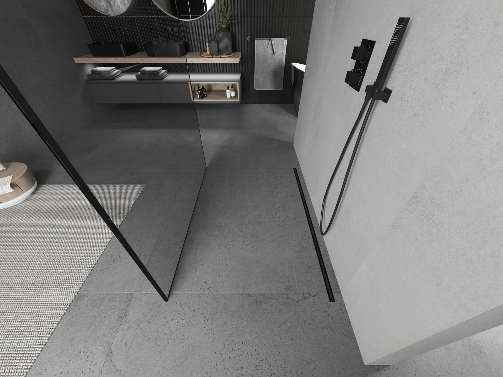 Mexen Kioto freestanding shower screen 130 x 200 cm, black frame 8 mm, black - 800-130-002-70-70