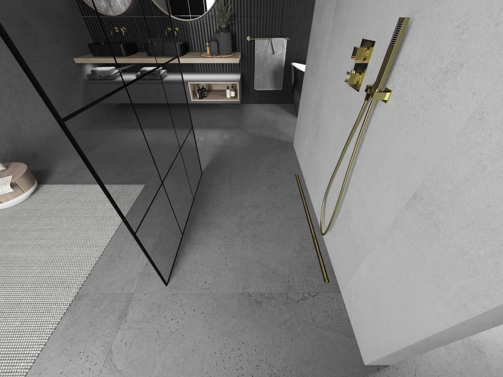 Mexen Kioto freestanding shower wall 110 x 200 cm, black grille 8 mm, gold - 800-110-002-50-77