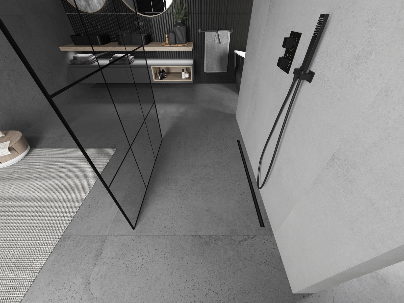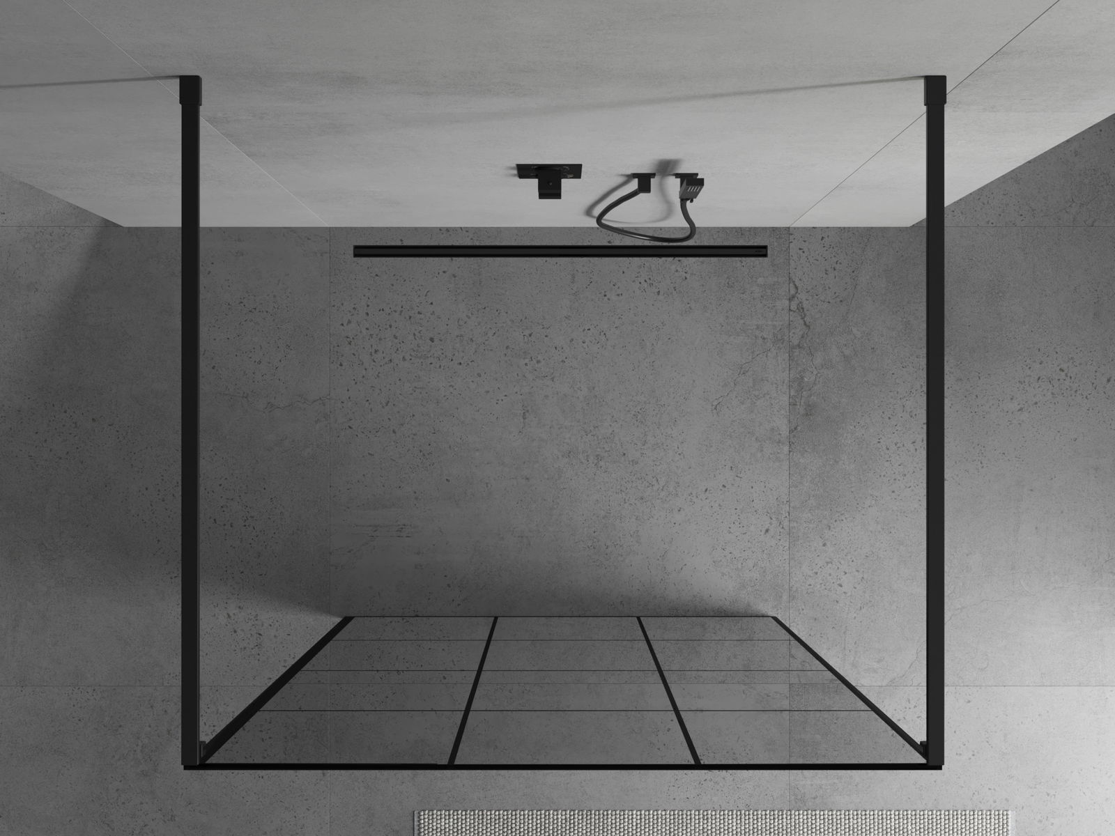 Mexen Kioto freestanding shower wall 100 x 200 cm, black grid 8 mm, black - 800-100-002-70-77