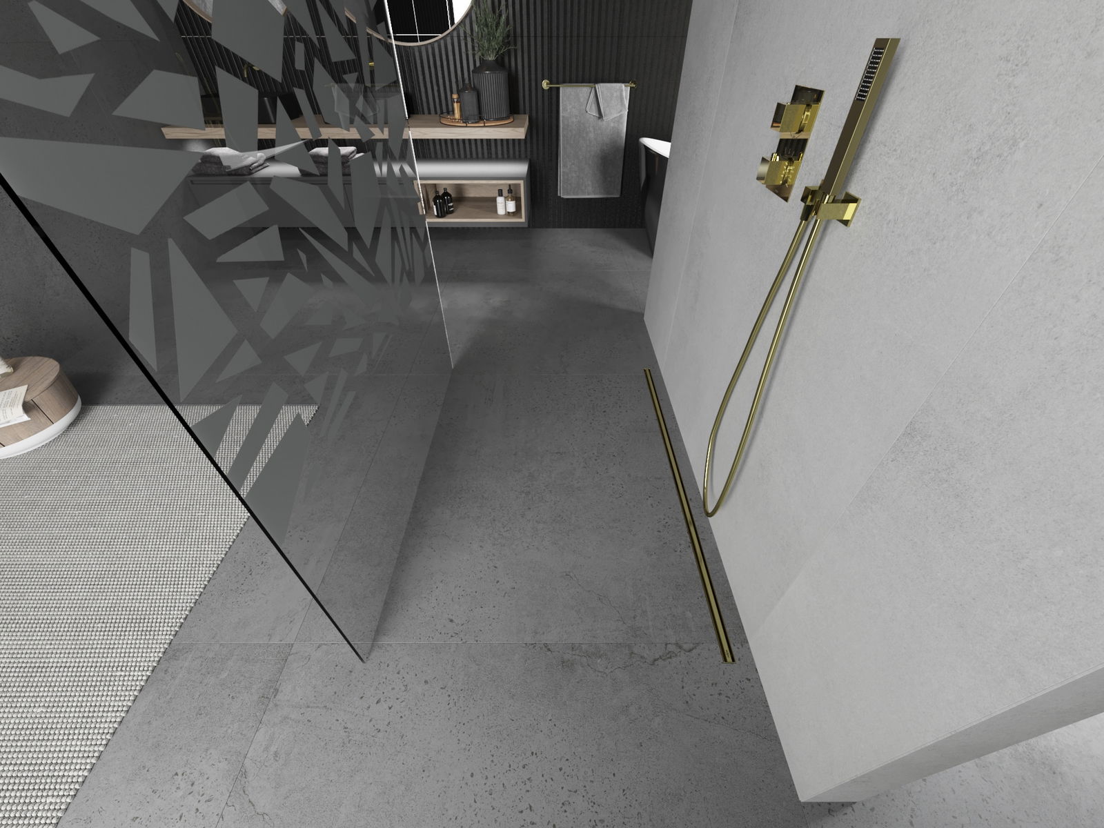 Mexen Kioto freestanding shower wall 130 x 200 cm, white pattern 8 mm, gold - 800-130-002-50-85