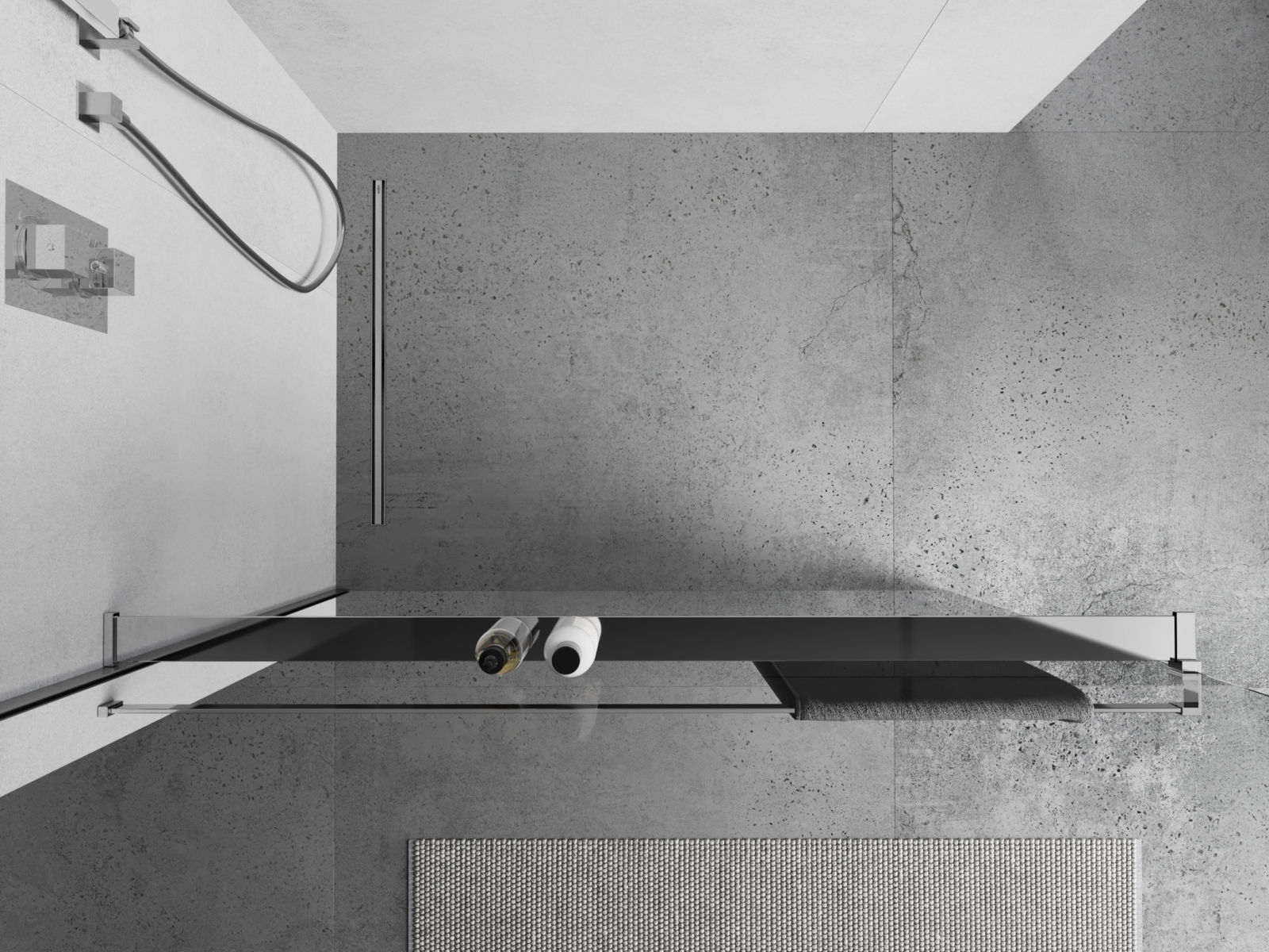 The shower shelf is made of durable aluminium, which makes it exceptionally resistant to moisture and corrosion. The shelf offers a convenient place for cosmetics and accessories, keeping the shower area tidy.