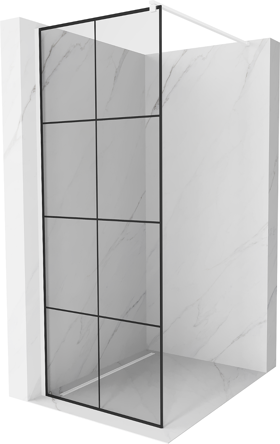 Mexen Kioto shower wall Walk-in 70 x 200 cm, black grid 8 mm, white - 800-070-101-20-77