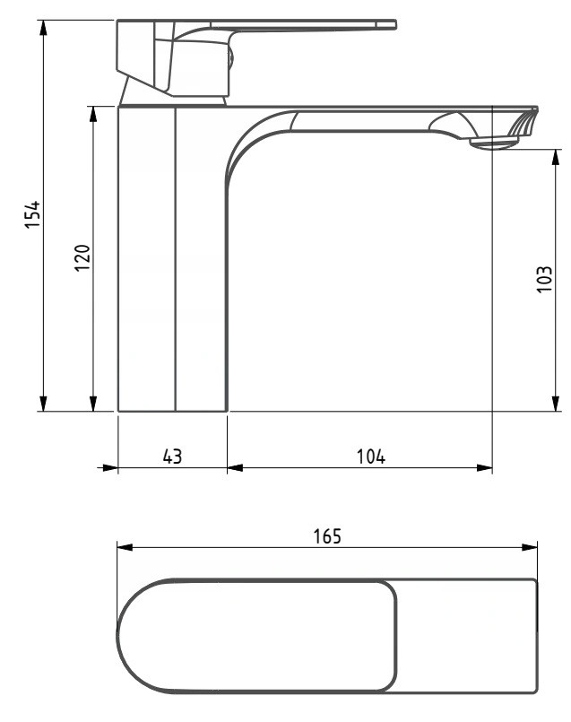 Spout reach: 104 mm
