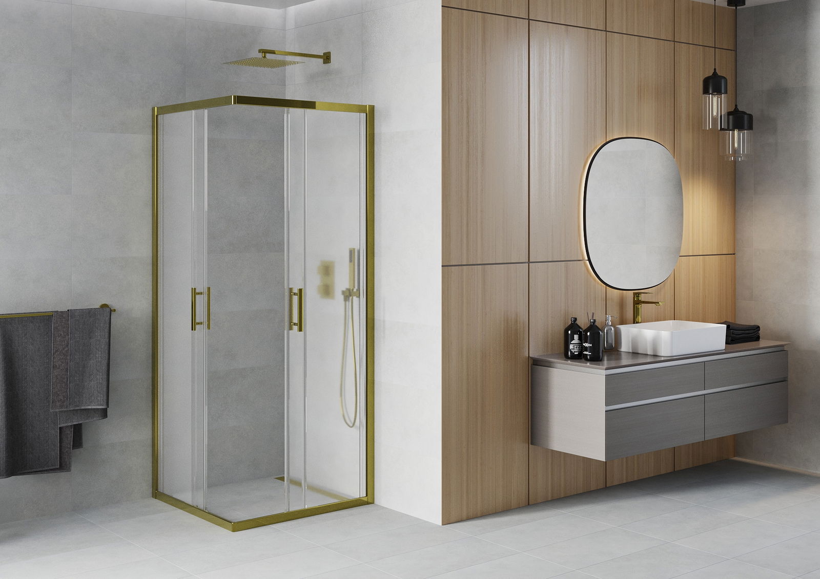 Mexen Rio square shower enclosure 80 x 80 cm, frosted, gold - 860-080-080-50-30