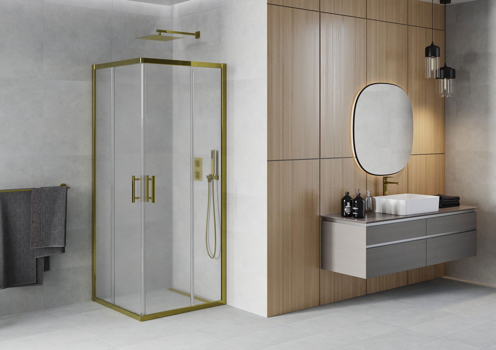 The handy and comfortable handle is made of durable and resistant metal. The fashionable shape, combined with a finish matching the color of the profiles, gives the whole a modern and stylish look, emphasizing the aesthetics of any bathroom.