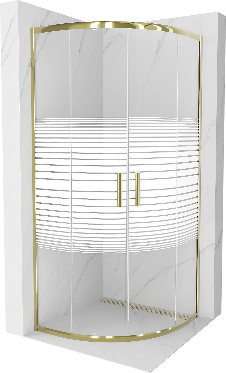 Mexen Rio semi-circular shower cabin 70 x 70 cm, white stripes, gold - 863-070-070-50-20