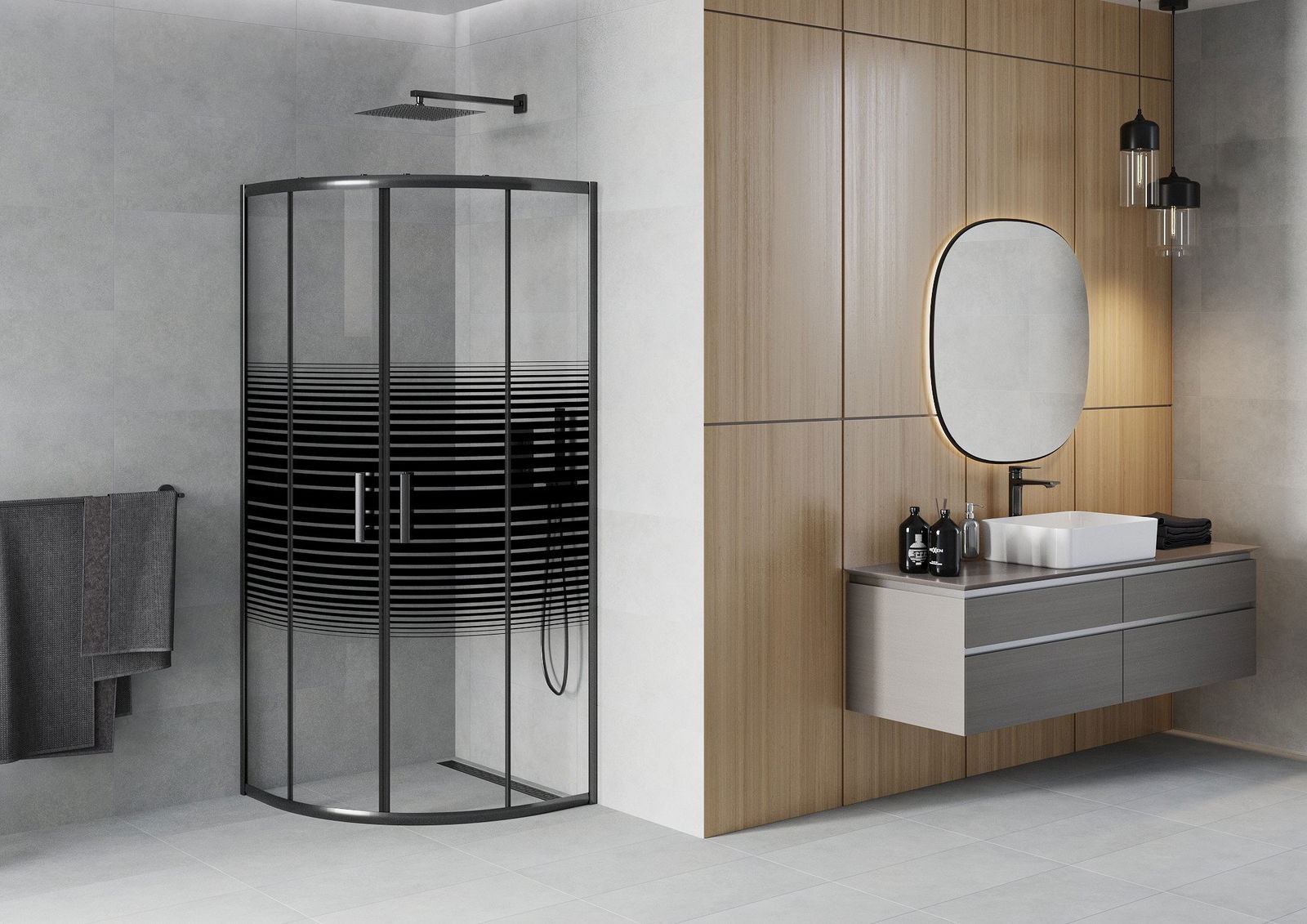 The handy and comfortable handle is made of durable and resistant metal. The fashionable shape, combined with a finish matching the color of the profiles, gives the whole a modern and stylish look, emphasizing the aesthetics of any bathroom.
