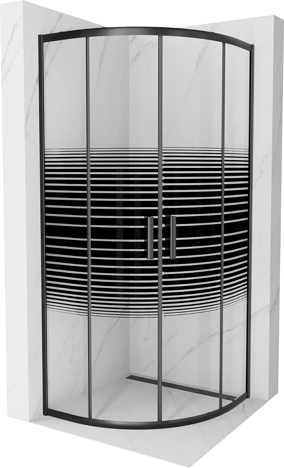 Mexen Rio semicircular shower cabin 80 x 80 cm, black stripes, black - 863-080-080-70-20