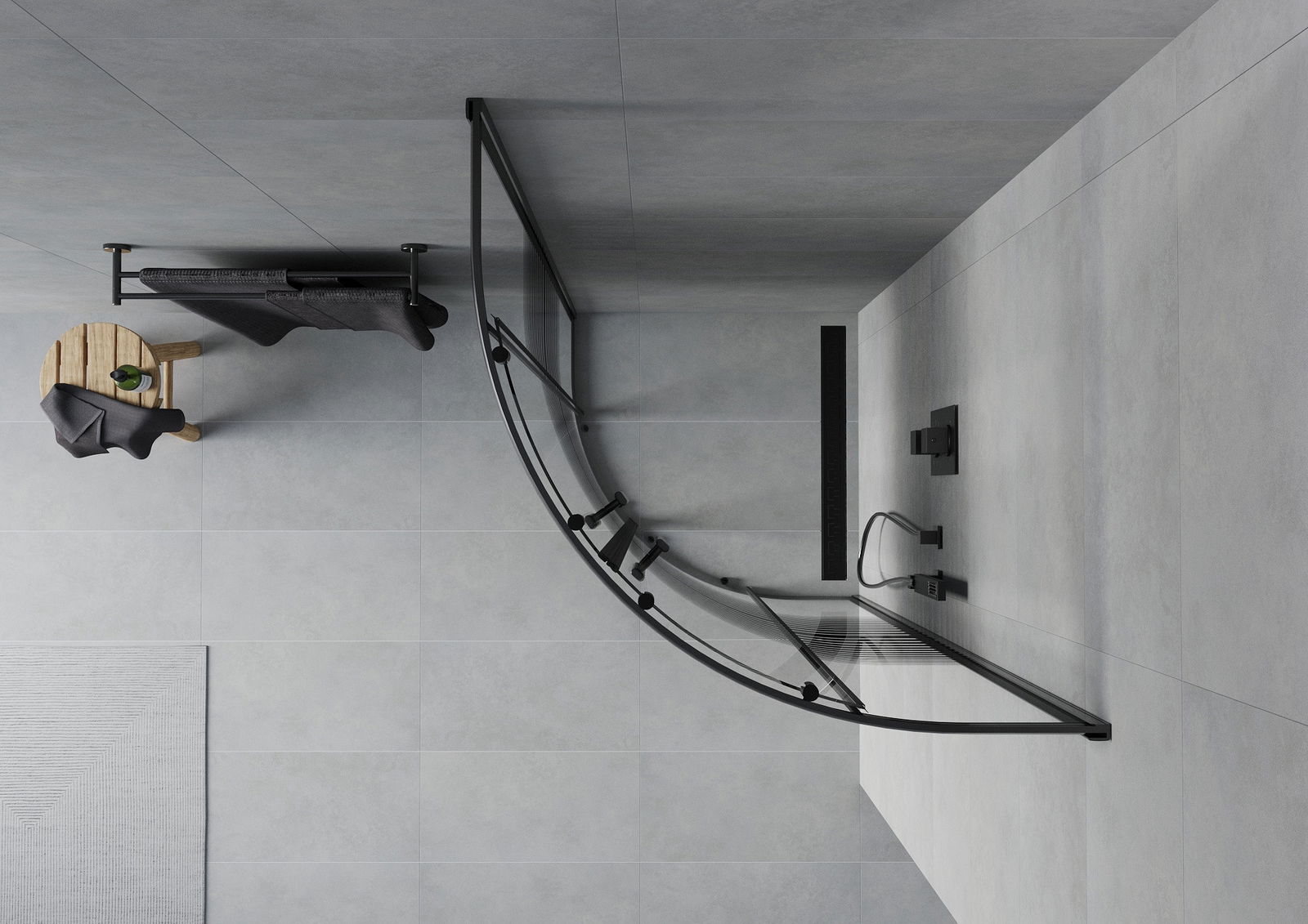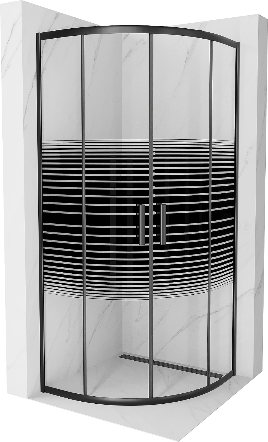 Mexen Rio shower enclosure semicircular 90 x 90 cm, black stripes, black - 863-090-090-70-20